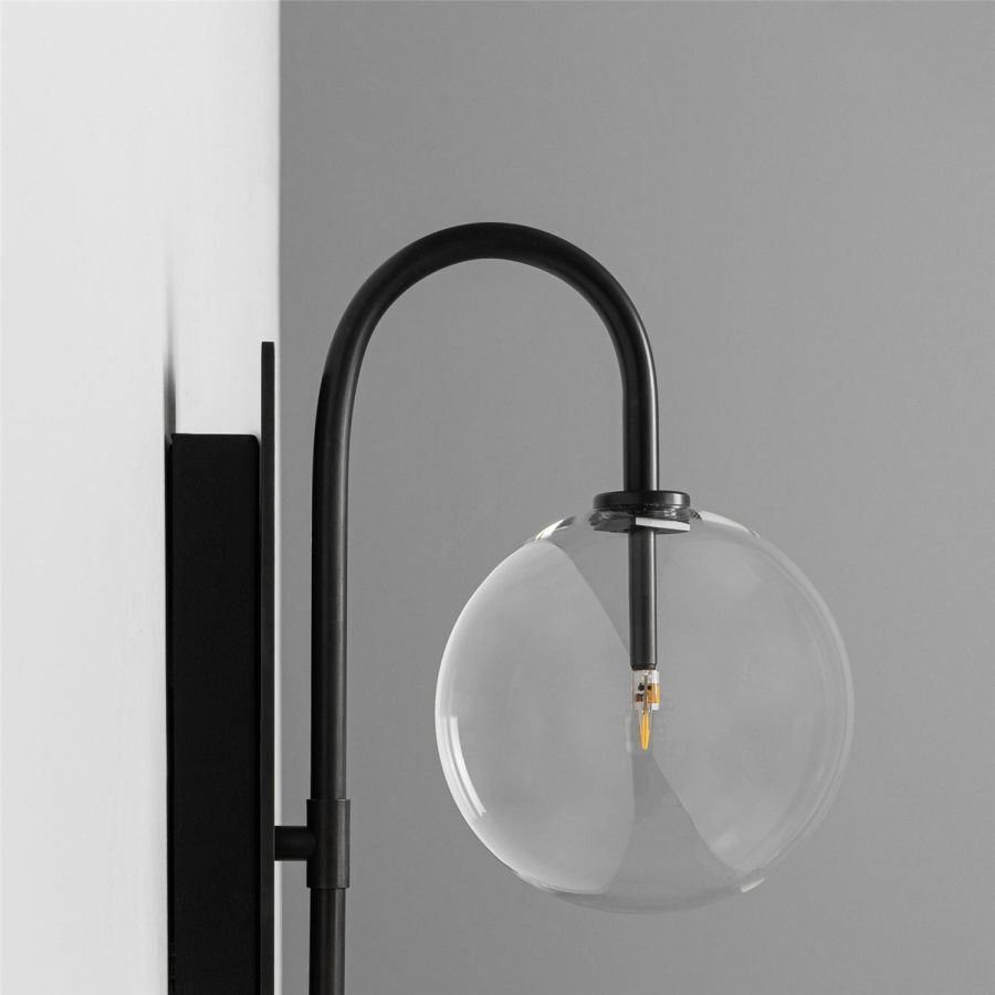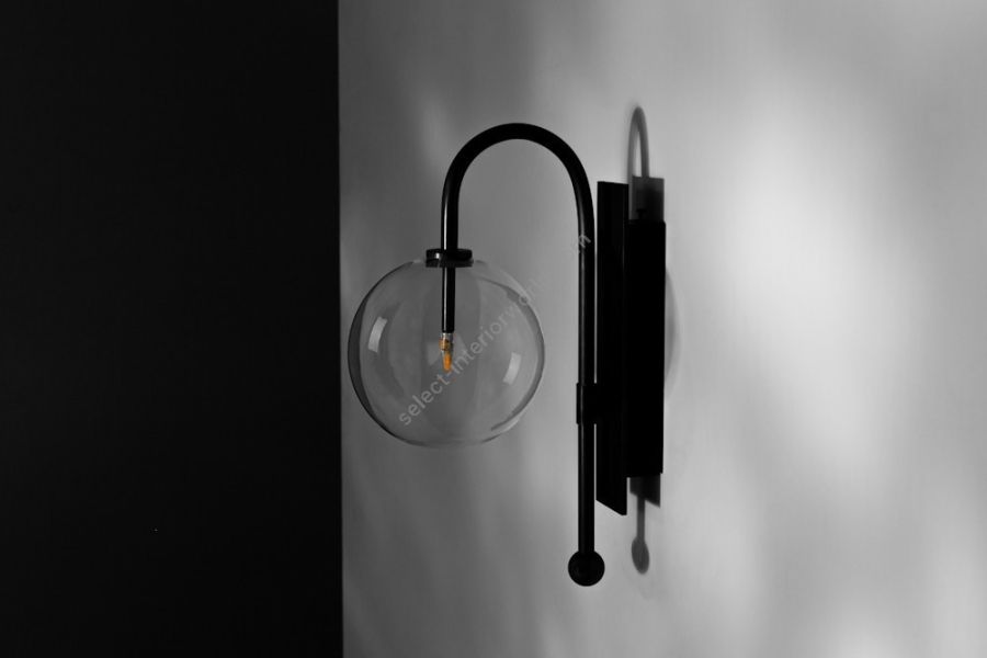 A bubble of mouth-blown glass hangs inverted on an arched stem: a nocturnal flower from the landscape of Naples bay. Shaped by the styles of Italian ‘Bel Design,’ the slender rectangular wall mount lends geometry to the composition.