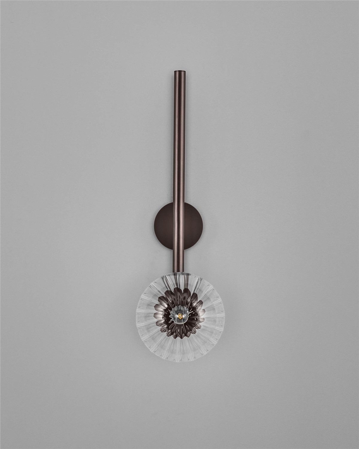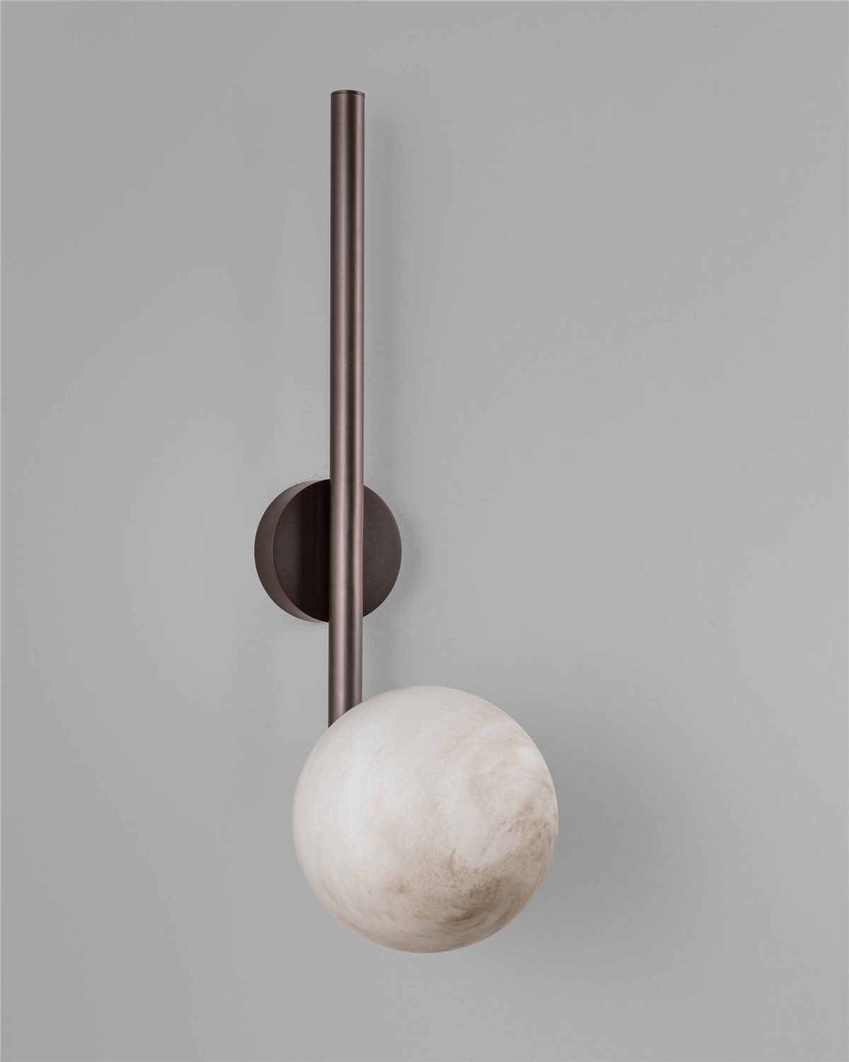 Even solitary, coherence resides in the line. The Tubular Sconce LD distills this graphic principle of the early modernists into a fixture; a solid brass arm extends from the wall, curving deftly to cradle a single, glowing sphere of opal, marble, or clear ribbon glass.With its scale expanded from its smaller counterpart, it happily ties in a room, be it generous or modest. Selectable in various brass finishes.