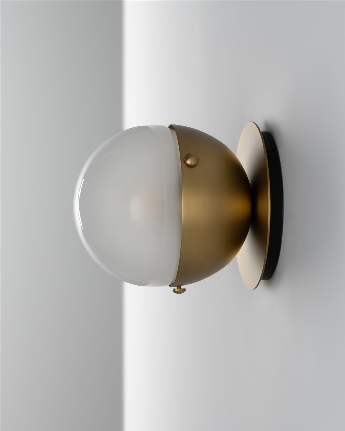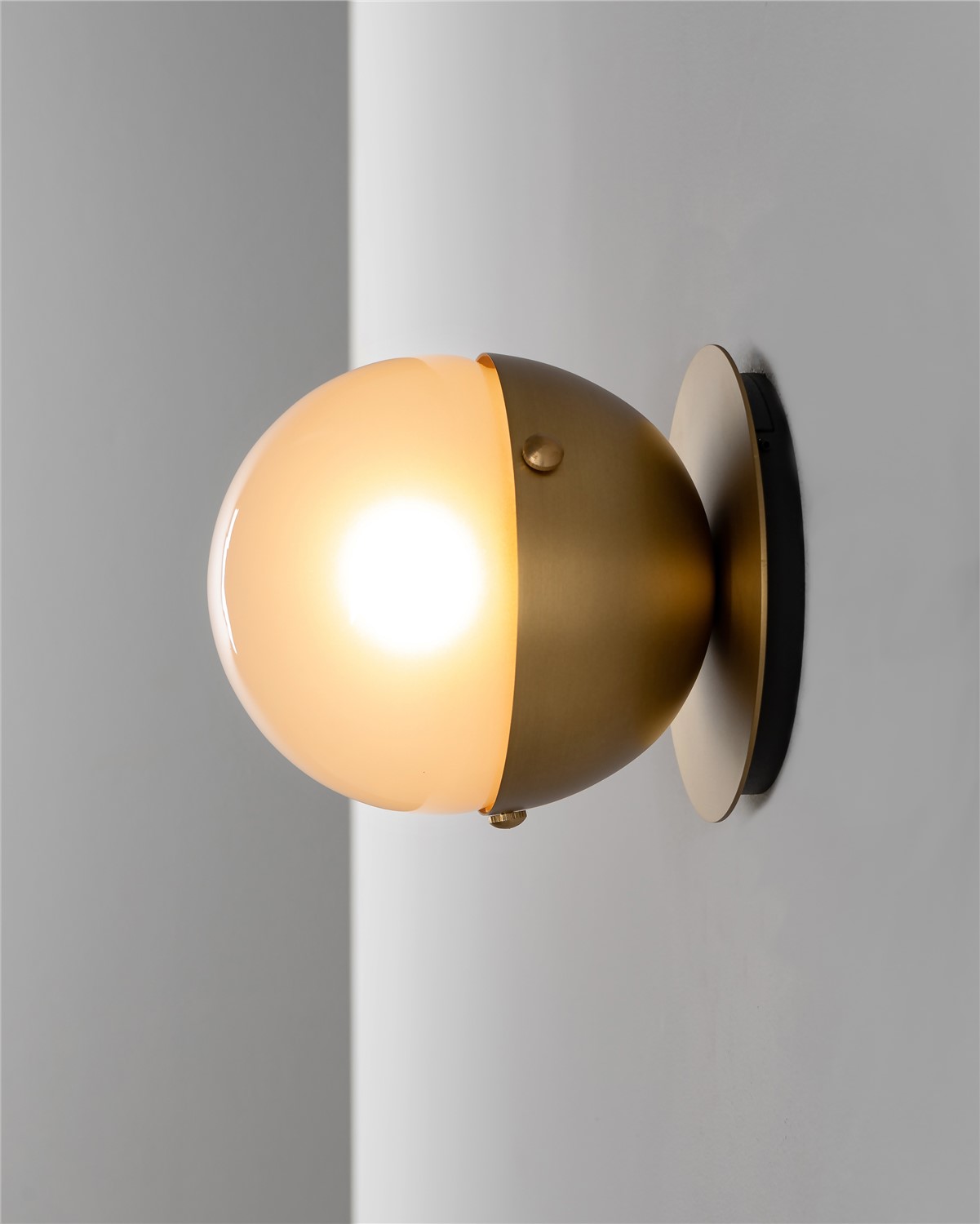 The fundamental contrast of light and shadow is encapsulated by two half globes in glass and brass.