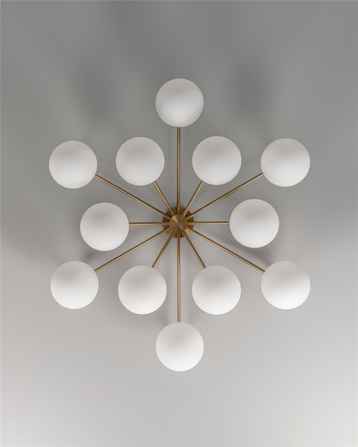 The crystalline clarity of the translucent sphere gifts a spontaneous, ethereal quality, aided by unassuming brass ceiling fixtures.
