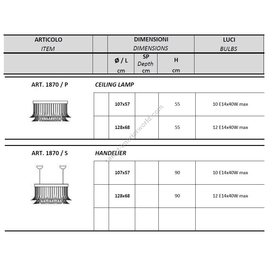- Pendant cm.: 90 x 57 x 107 / inch.: 33,9 " x 22,5 " x 42,1"