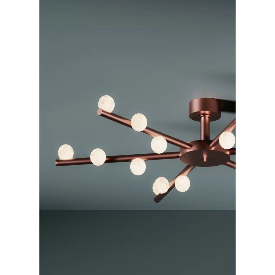 The name Demeter, goddess of flora, perfectly reflects the distinctive shape of this Italian Alabaster series. The spheres, made of pure, hand-turned alabaster, resemble fruit hanging from the branches of a hypothetical tree of light. These brilliant elements stand out between heaven and earth and symbolize the richness that only Mother Nature can offer us.