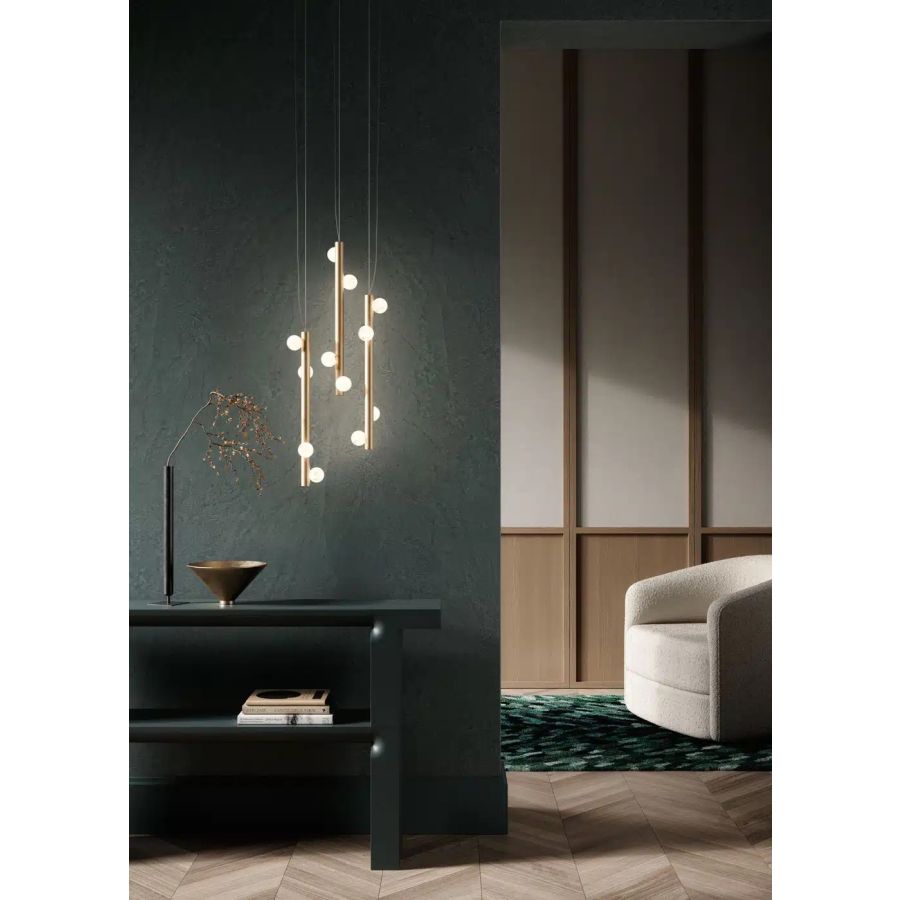 The name Demeter, goddess of flora, perfectly reflects the distinctive shape of this Italian Alabaster series. The spheres, made of pure, hand-turned alabaster, resemble fruit hanging from the branches of a hypothetical tree of light. These brilliant elements stand out between heaven and earth and symbolize the richness that only Mother Nature can offer us.