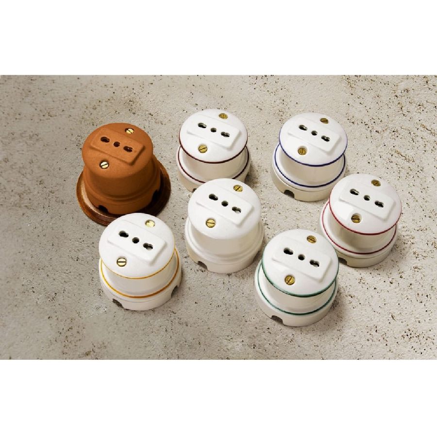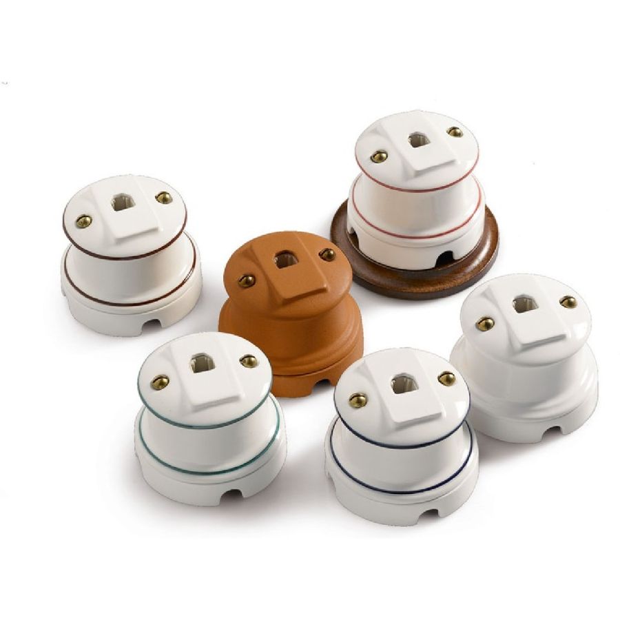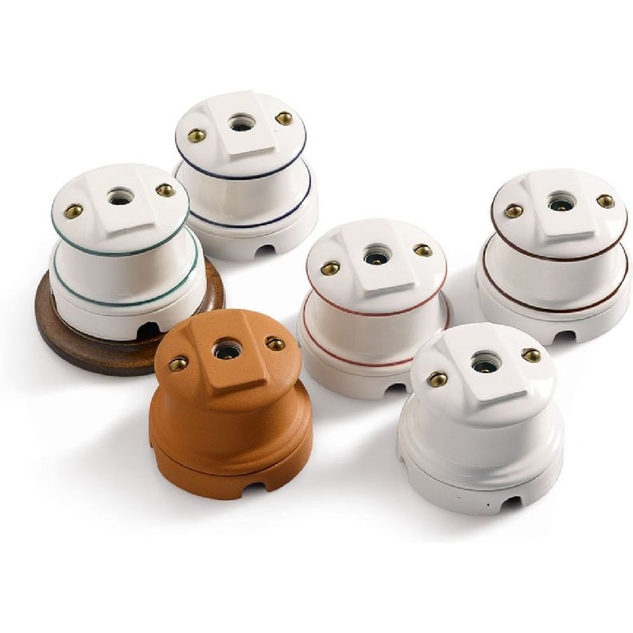 Keramiska ytmonterade strömbrytare, uttag samt stora eller små kopplingsdosor.