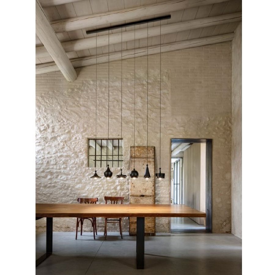 Linjär komposition av keramisk pendel, med en 3 meter lång kabel, justerbar i höjd vid installation.