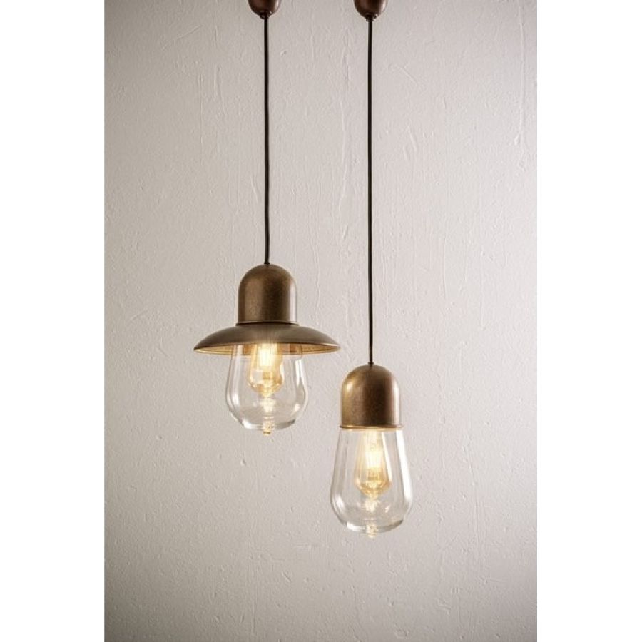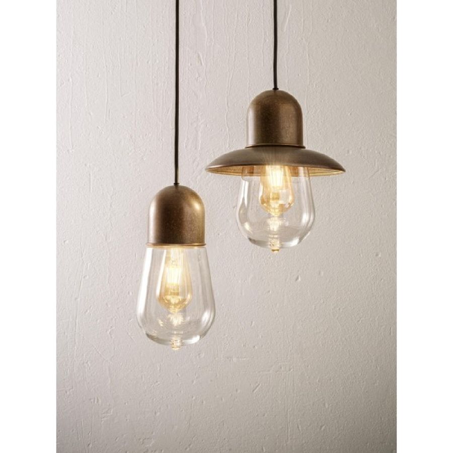 Mässingspendel med transparent glasdiffusor, finns också i versioner med eller utan reflektor.