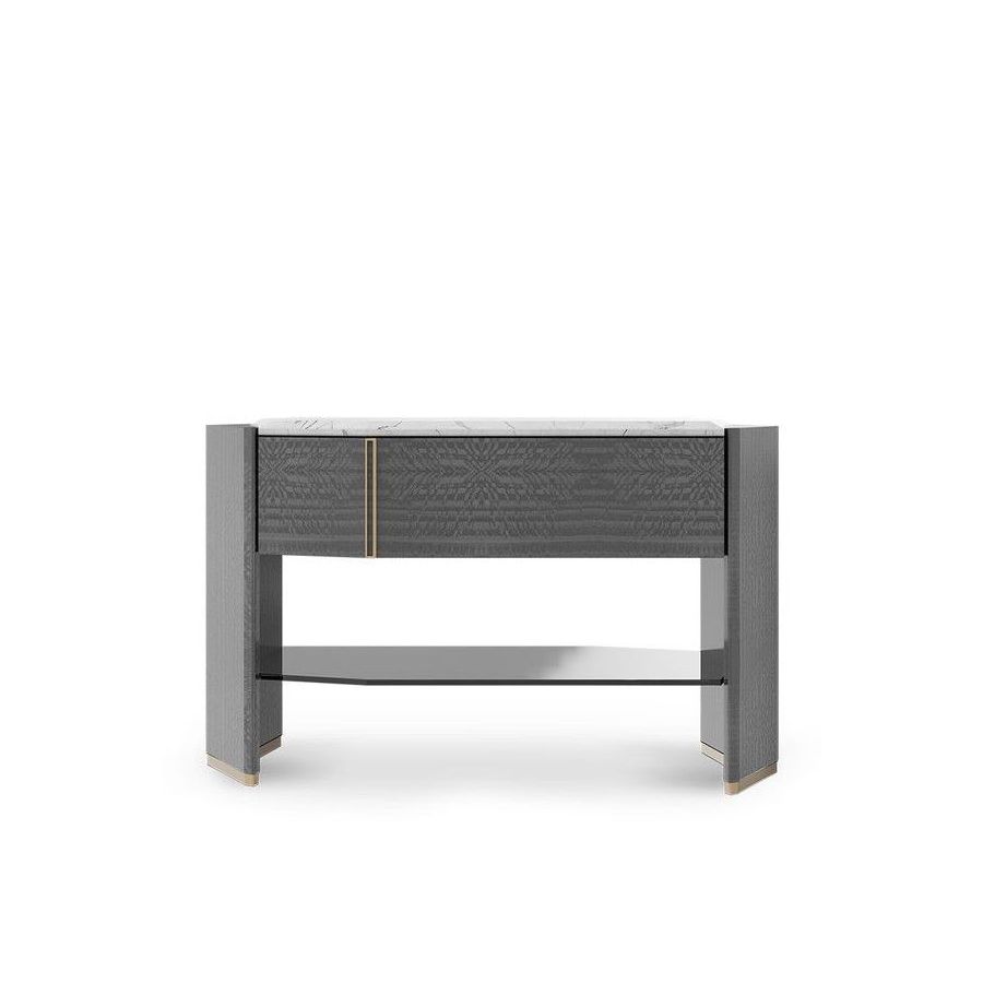 Algerone Nightstand showcases the distinctive strength and elegance that only marble can offer, bringing a touch of modernity to any bedroom design. With its sleek features and geometric lines, this bedside table serves as the perfect choice, featuring a marble countertop that enhances the overall aesthetic.