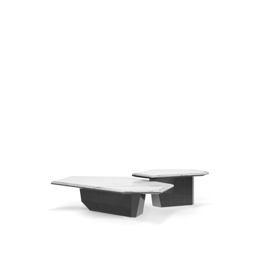 The Algerone Set II Center Table displays the strength and grace of Statuario marble combined with the charm of glossy Eucalyptus Frisé Veneer. Comprising two tables that seamlessly blend into each other, this design piece features outstanding craftsmanship that will transform any living space.
