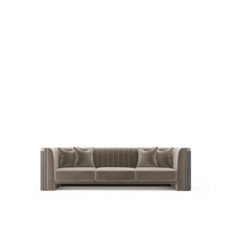 The Algerone sofa was created to express the ultimate expression of comfort and luxury in a singular piece. Upholstered in smooth brown velvet, this linear sofa emphasizes the classical lines and geometric features that the Algerone family is best known for. The Algerone sofa is bound to become the enviable centerpiece of any living room style.