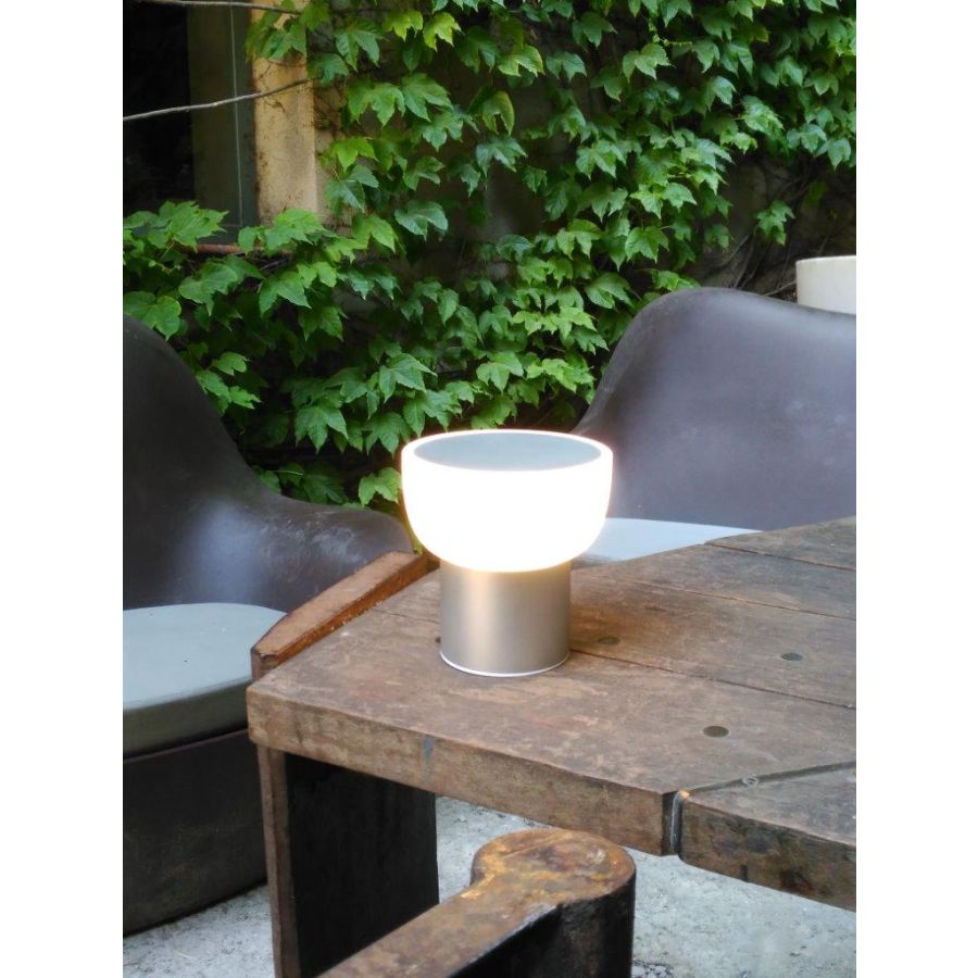 Det vi tycker mest om med PATIO är hur vacker den är och det faktum att den kan tas med överallt. Och att den inte bländar och har tre ljusstyrkenivåer, en för varje tillfälle: den högsta för att läsa eller för att se vad som finns på tallriken, den medelstarka för att samtala eller för att följa ett avkopplande ögonblick, och den mjukaste för mer intima stunder eller vila, eller för att ge stämningsbelysning utan skärpa. Dess ljus sprids homogent och belyser utrymmet utan skuggor. PATIO kan användas på ett nattduksbord, i ett vardagsrum i avslappnad stil eller i ett ungdomsrum, men där den verkligen är idealisk är i utomhusmiljöer, terrasser eller trädgårdar, i hotell, restauranger, yachter eller vid husvagnscamping.
