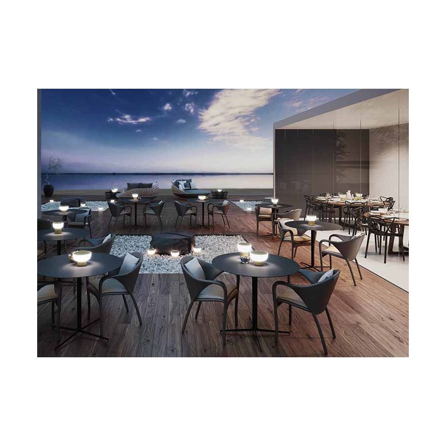 Det vi gillar mest med PATIO är hur vacker den är och det faktum att den kan tas med vart som helst. Att den inte bländar och att den har tre ljusintensiteter, en för varje ögonblick: den högsta för läsning eller för att se vad som finns på tallriken, den mellersta för samtal eller som sällskap i ett avkopplande ögonblick, och den mjukaste för stunder av större intimitet eller vila, eller för att ge stämningsbelysning utan skärpa. Dess ljus sprids homogent och belyser utrymmet utan skuggor. PATIO kan användas på ett nattduksbord, i ett vardagsrum i avslappnad stil eller i ett ungdomsrum, men där den verkligen är idealisk är i utomhusmiljöer, terrasser eller trädgårdar, i hotell, restauranger, yachter eller vid husvagns- och husbilsresor.
