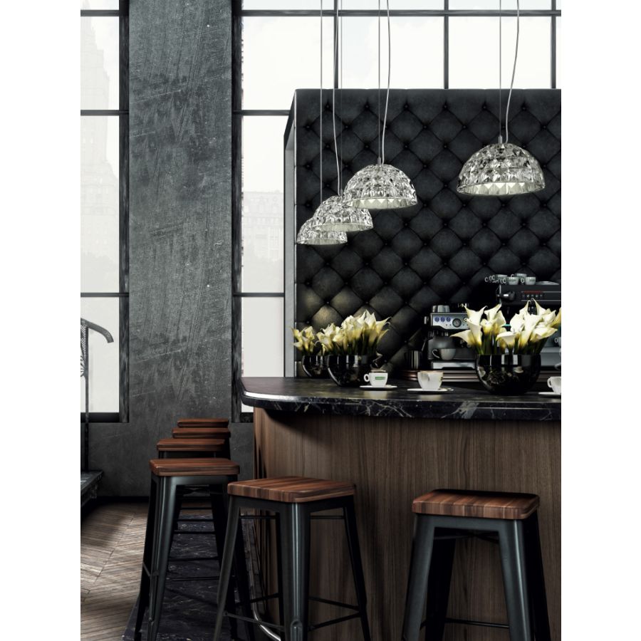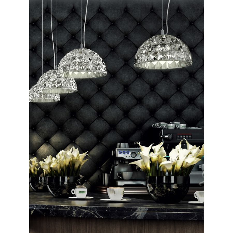 Vi älskar DECO eftersom den är elegant, vacker och iögonfallande, och när den är tänd skapar den ett skådespel av ljusreflektioner runt omkring. Den ger mycket ljus och glädje till alla typer av utrymmen i hem, hotell och lokaler, men vi anser att den passar särskilt bra med inredningar som utstrålar en retrokänsla med en atmosfär av fyrtiotalet och femtiotalet.