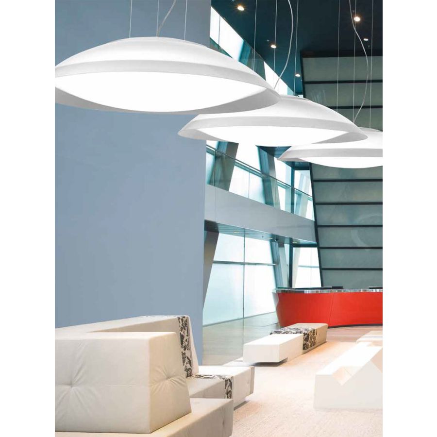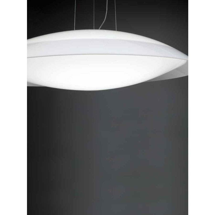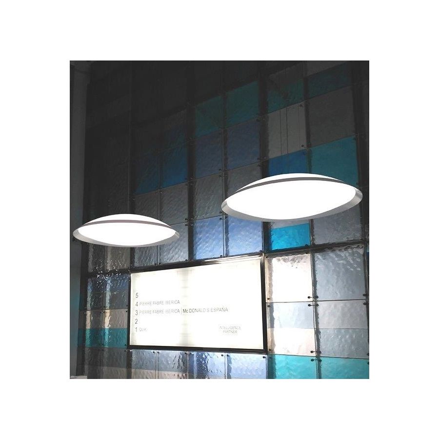 Vi gillar verkligen LENS eftersom den är vacker och imponerande. Dess skärm, med sin fridfulla design och sin lentikulära futuristiska prägel, utstrålar ljus runtomkring, även uppåt. Vi finner LENS unik och mycket attraktiv: när den installeras på en plats riktas allas blickar mot den. Dessutom är det en mångsidig kollektion som erbjuder stora variationsmöjligheter när den presenteras som taklampa och som pendel, båda med en 90cm diameter lampskärm. Det är alltså en familj av armaturer utformad för att tillfredsställa alla marknadens behov. Den är idealisk för att belysa alla typer av utrymmen i hem, hotell, restauranger, arbetscentra, anläggningar och köpcentrum.