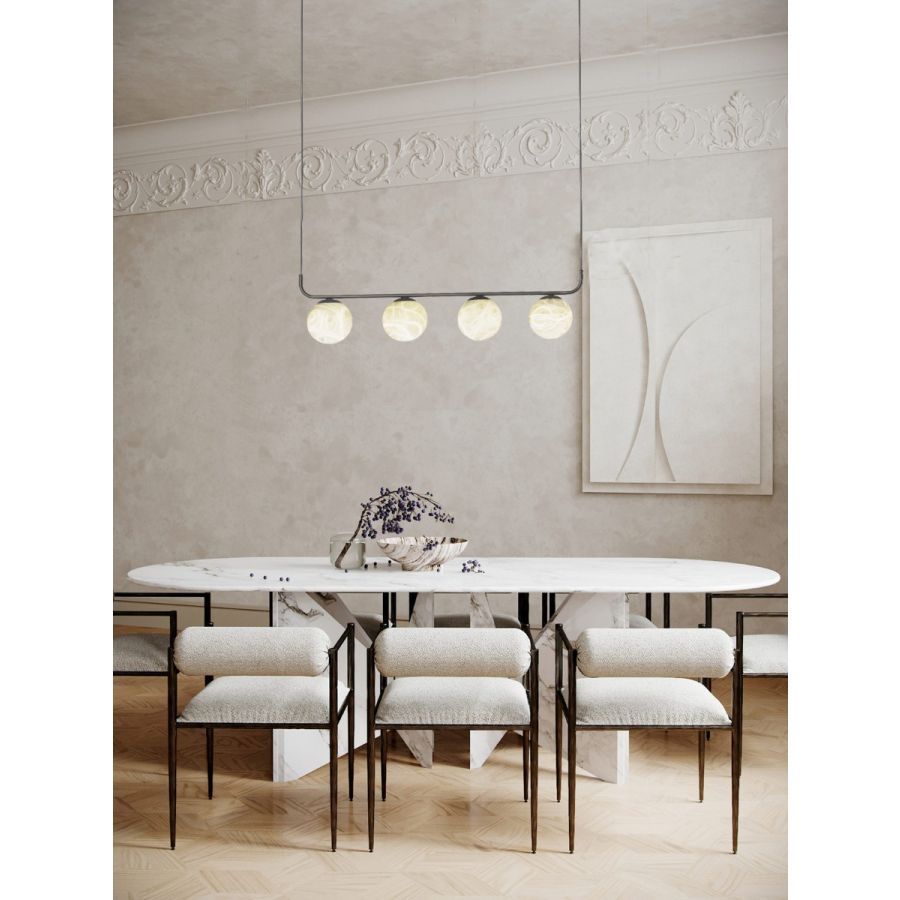Det som mest tilltalar oss med TRIBECA-kollektionen är dess hantverksmässiga uttryck, dess Art Déco-inspiration och det faktum att den kombinerar ädla material såsom järn och alabaster. Å andra sidan är konstruktionerna enkla och står i kontrast till stenens 'tyngd', i en perfekt balans mellan vikt och lätthet. Alabastern förmedlar en stor värme och ger varje skärm en unik och oåterupprepbar identitet, med vita och grå ådringar, ibland med en aning jordnära färg och en mjuk translucens. TRIBECA är idealisk för eleganta och utmärkta utrymmen, vare sig i ett hem, i hotellobbyn, i stilfulla 'hospitality'-utrymmen och i allmänhet i avantgardistiska interiörer, även om den också anpassar sig till en 'vintage'-dekorativ stil