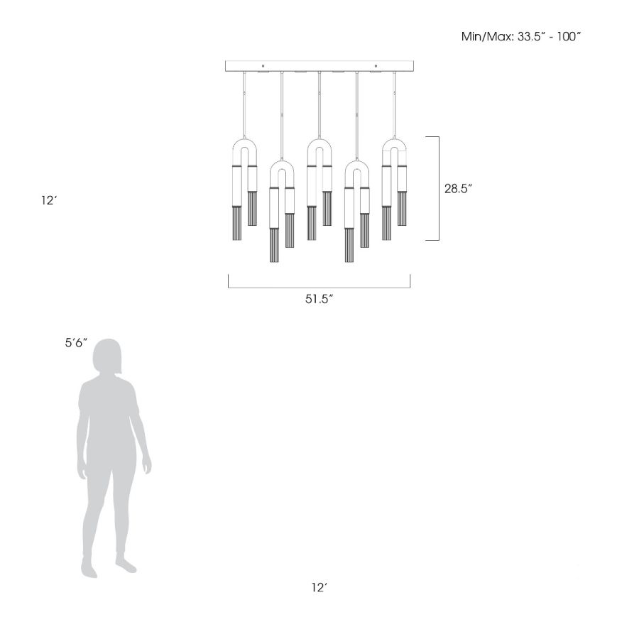 Antonia 51.5″ Linear Pendant featuring soft curves and the inclusion of metals carefully handcrafted to transition from parchment to magnificent glass, culminating in a stunning beam of light. Suspended by connectable rod segments for a customizable length. Available in a wide range of exquisite finishes, including our five standard finishes and our newest Soft Ombre Bronze & Soft Ombre Silver, with the choice of two parchment colors, Charcoal and Smoke. Also available with no parchment. Each rod comes in connectible segments for customizable length: (1) 3″, (1) 6″, (2) 12″, (2) 18″. Upper & lower lights can be wired independently for single or dual light control.
