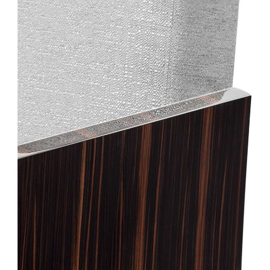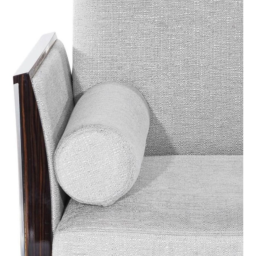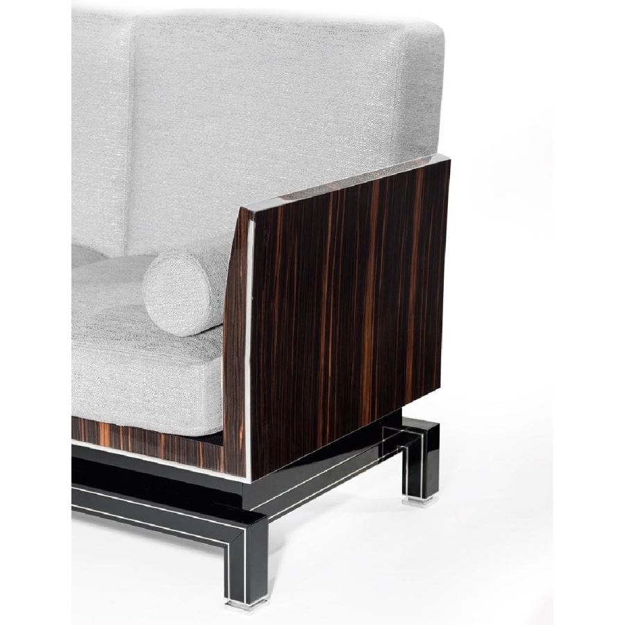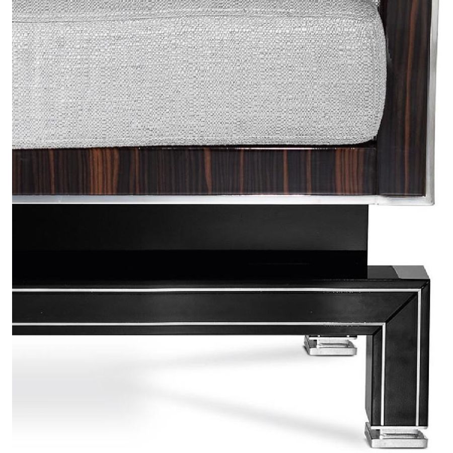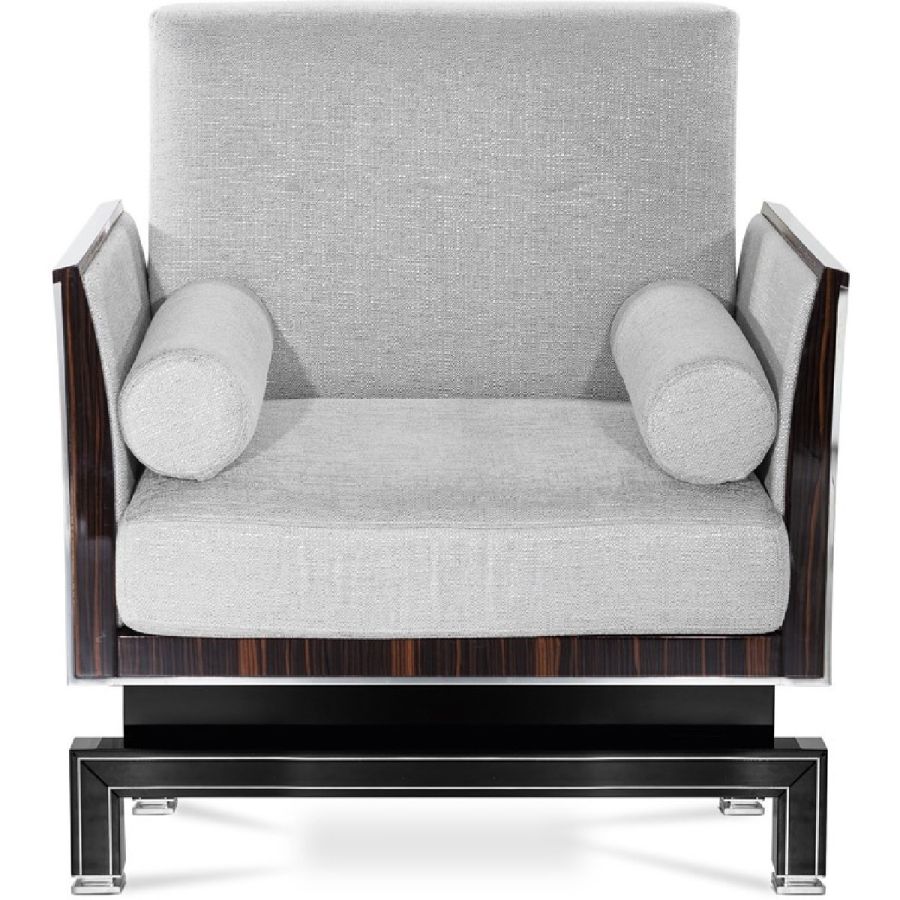 Fabric Armchair. Structure in shiny varnished ebony wood and black lacquered wood with inserts in shiny stainless steel.