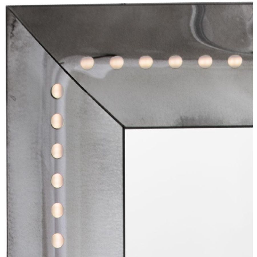 Structure made of wood. Central clear mirror and medium antique mirror finish glass on the edges. LED lights