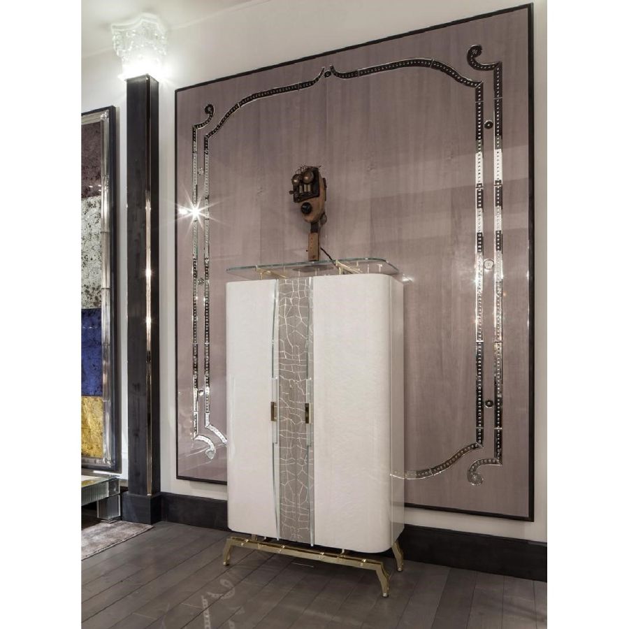 Arte Veneziana's cabinets are the epitome of Italian craftsmanship, transforming storage into an artistic experience. Blending intricate hand-engraved glass with luxurious finishes such as antiqued mirrors, lacquered wood, and decorative metal details, these pieces go far beyond functionality. Each cabinet is a distinctive statement, revealing the brand’s dedication to tradition, elegance, and originality.