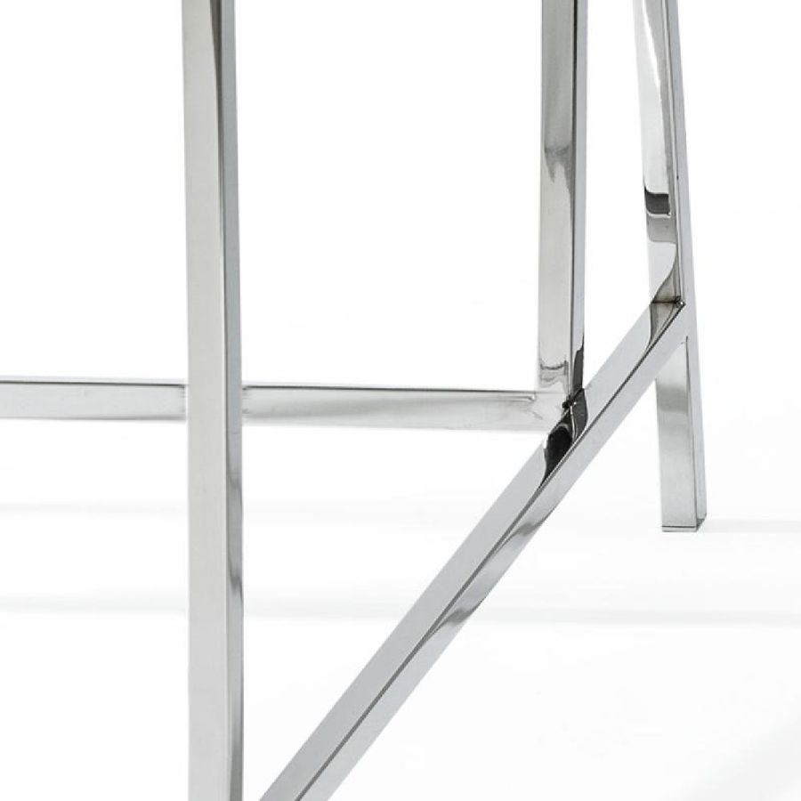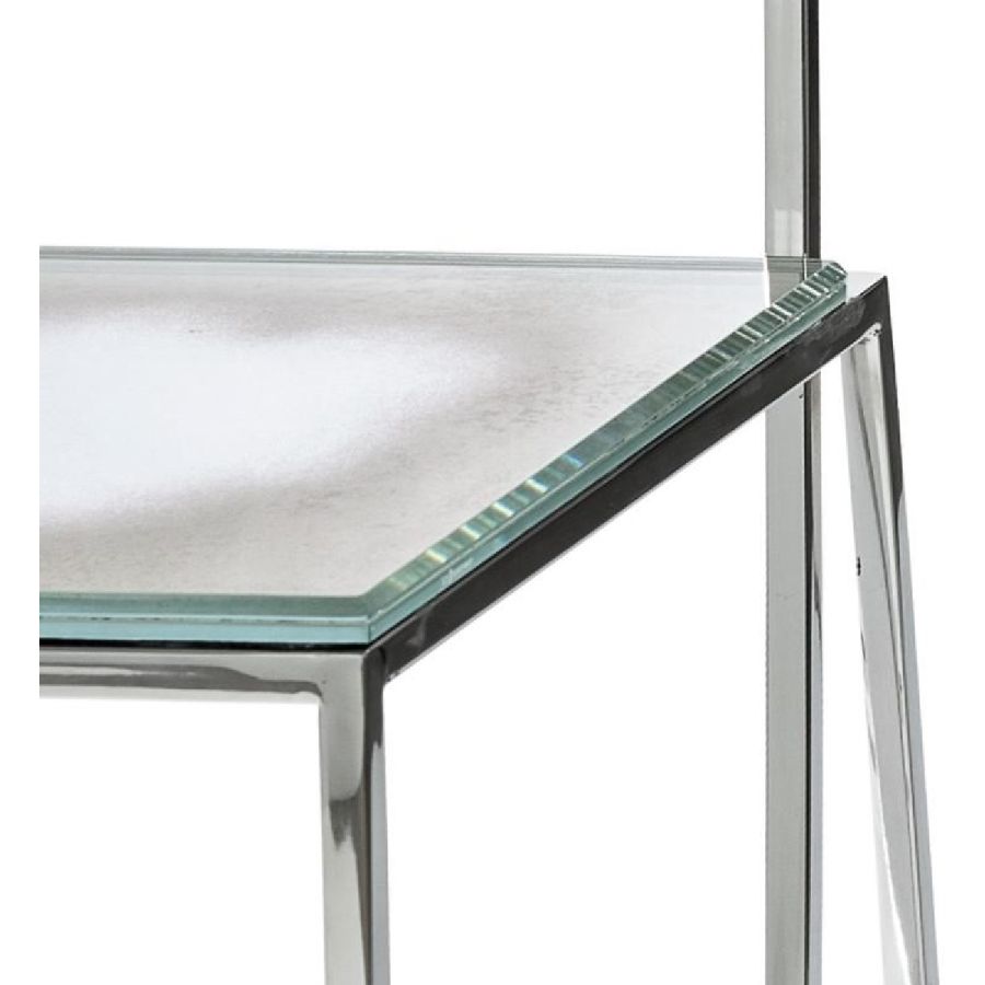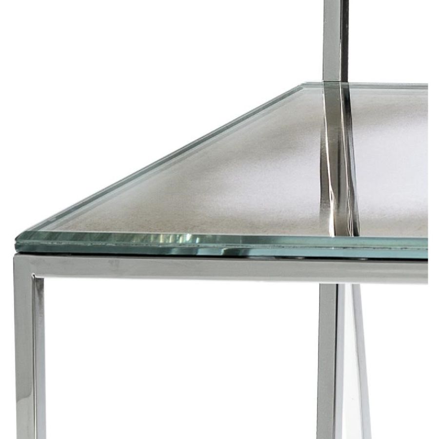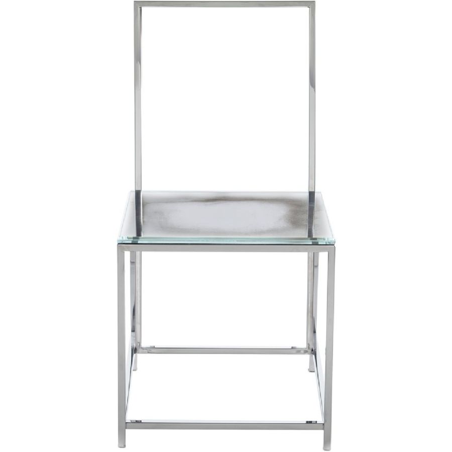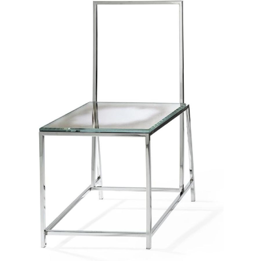 Chair in extraclear glass with “Lagune” style medium antique mirrored finish on the edges and transparent in the centre. Structure in shiny stainless steel.