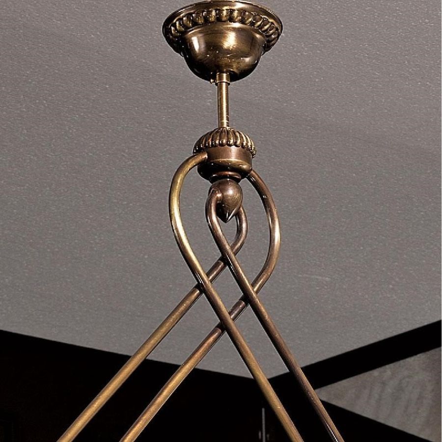 Metal structure with antiqued brass finish. Two crystal coloured Murano glass arms, “torchon” style.