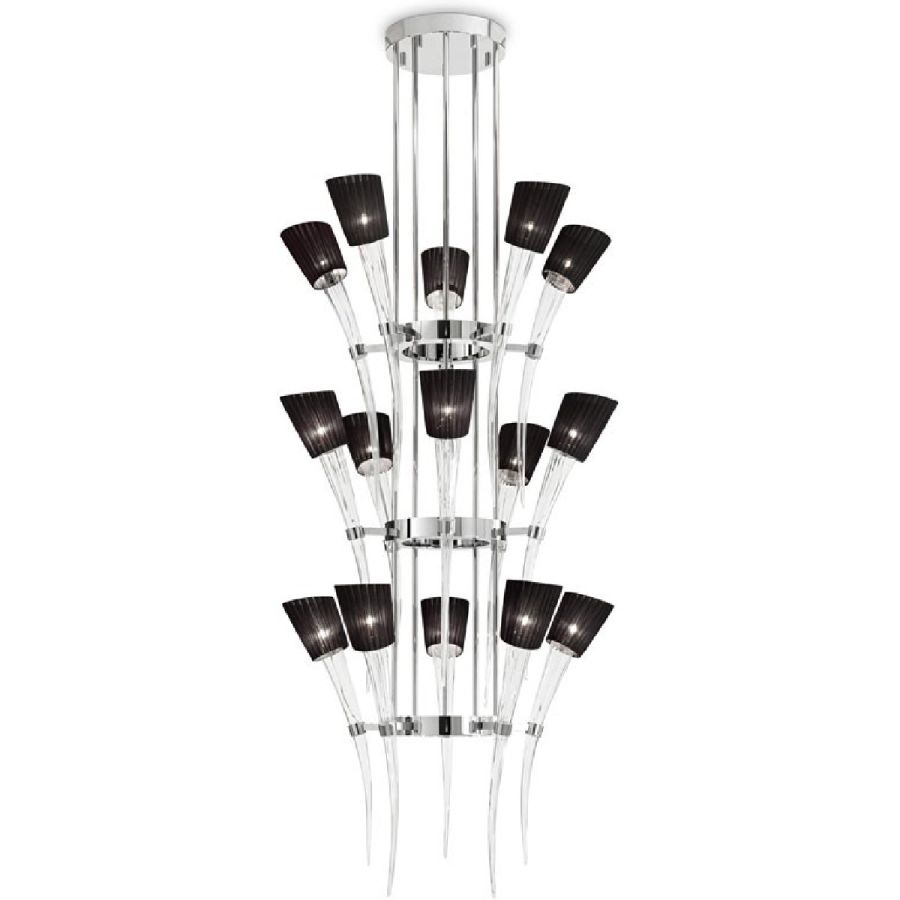 Pleated black coloured lampshades with 15 (5+5+5) lights.