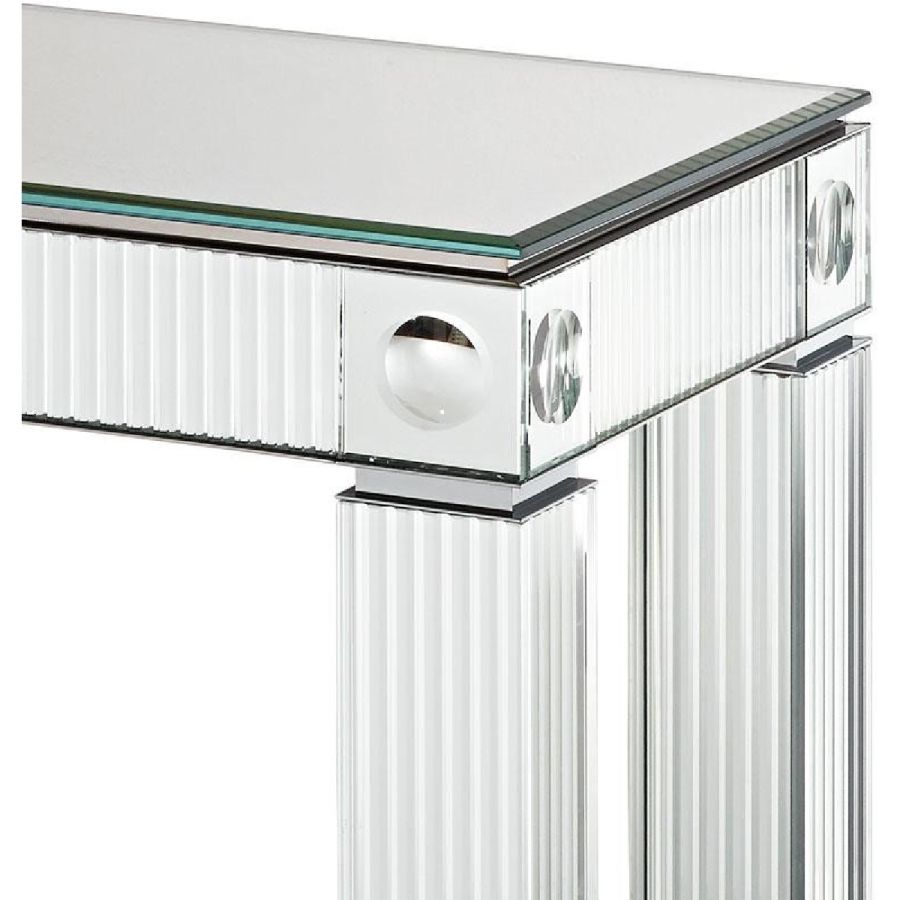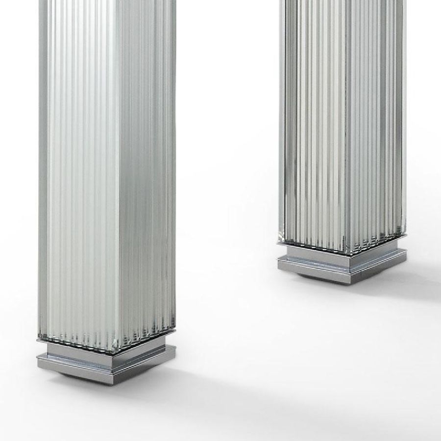 Frames and legs made of bevelled and engraved glass with clear mirror finish.
