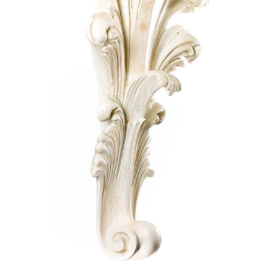 Structure made of wood. Hand carved base made of lime wood with white antique cementite finish.