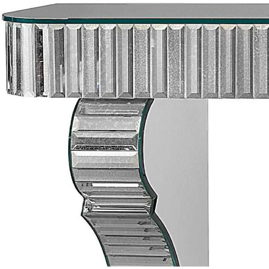 Top made of bevelled glass with medium antique mirrored finish. Frame and legs made of bevelled glass tiles with medium antique mirrored finish.