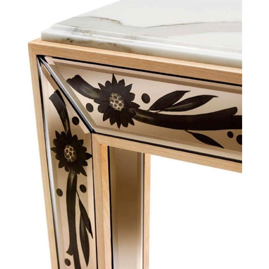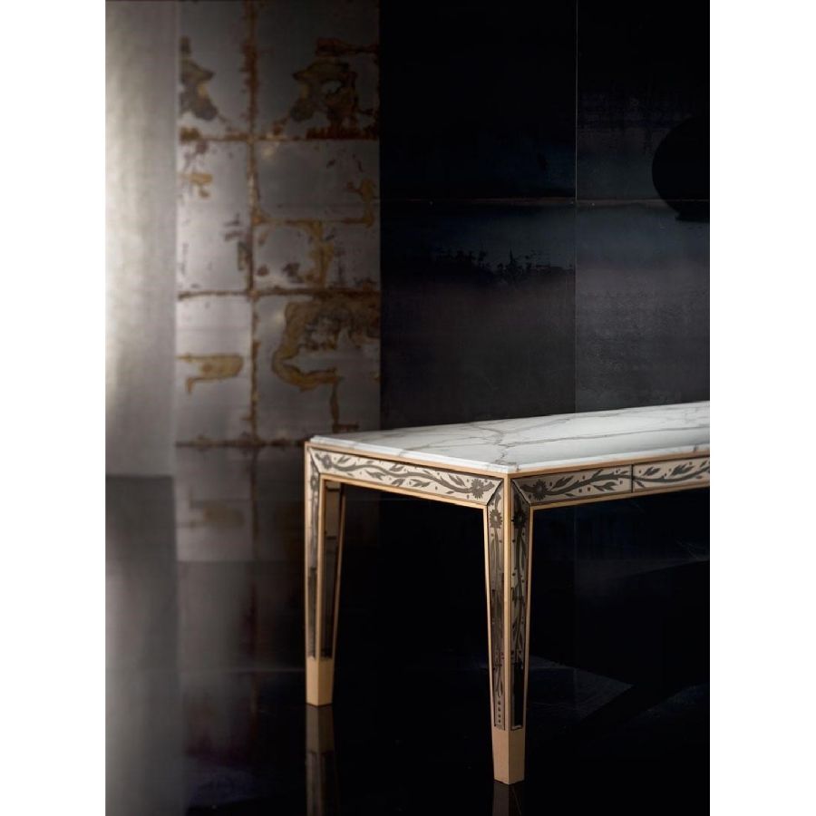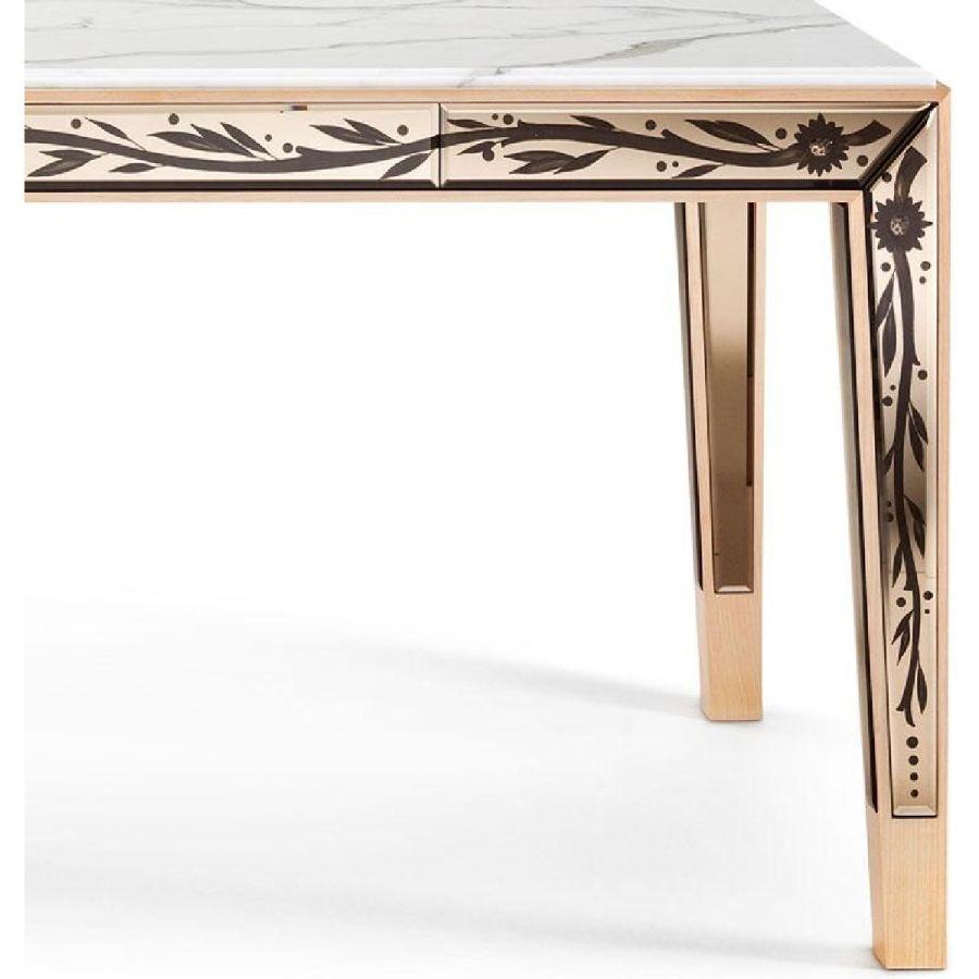 Dining tables by Arte Veneziana embody the brand’s flair for blending artistic expression with traditional Venetian craftsmanship. Each table is a statement piece, featuring hand-engraved glass, rich finishes, and bold proportions that reflect a deep reverence for historical design. Whether adorned with mirrored panels or subtle ornamentation, these tables bring a sense of grandeur to the heart of the home.
