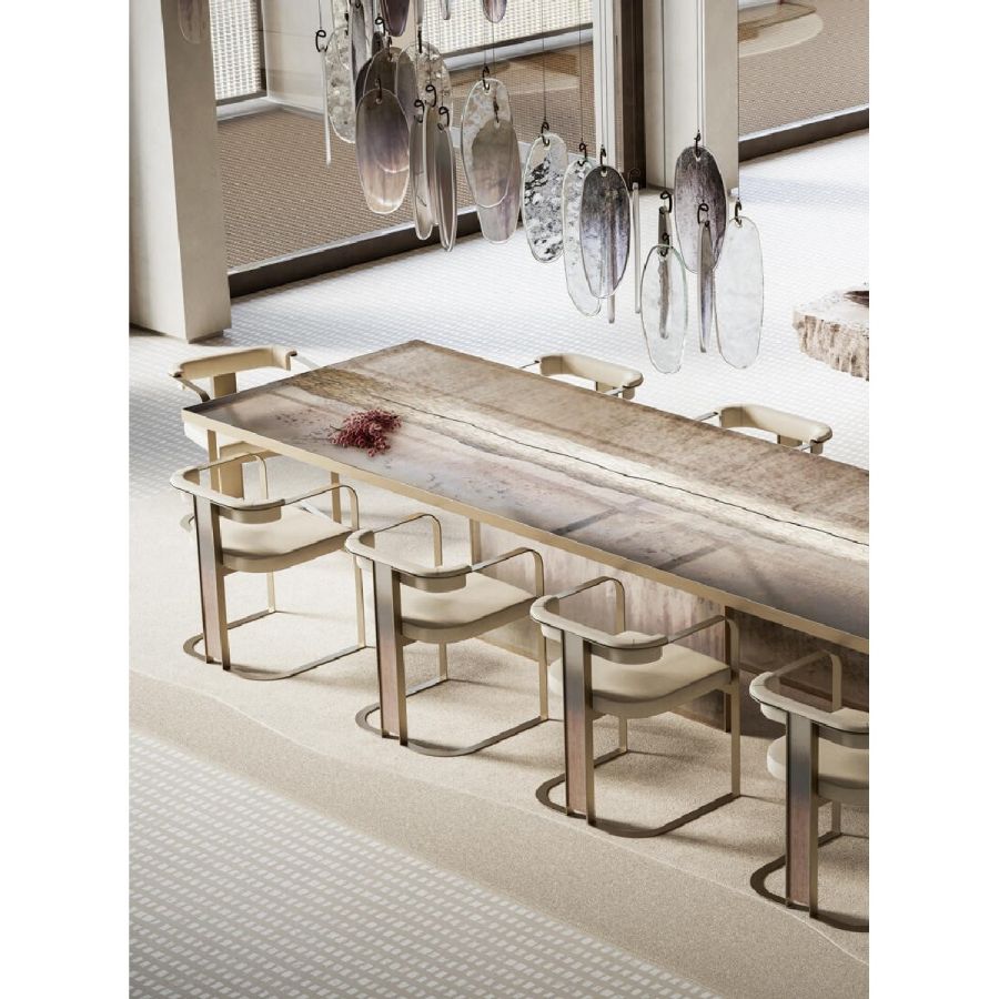 Dining tables by Arte Veneziana embody the brand’s flair for blending artistic expression with traditional Venetian craftsmanship. Each table is a statement piece, featuring hand-engraved glass, rich finishes, and bold proportions that reflect a deep reverence for historical design. Whether adorned with mirrored panels or subtle ornamentation, these tables bring a sense of grandeur to the heart of the home.