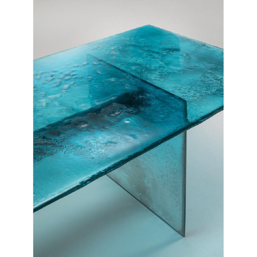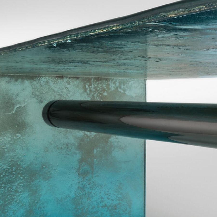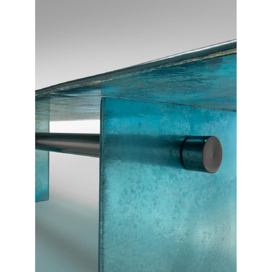 All painted in a degradé finish from aquamarine to transparent, with partial silvering on the back.
