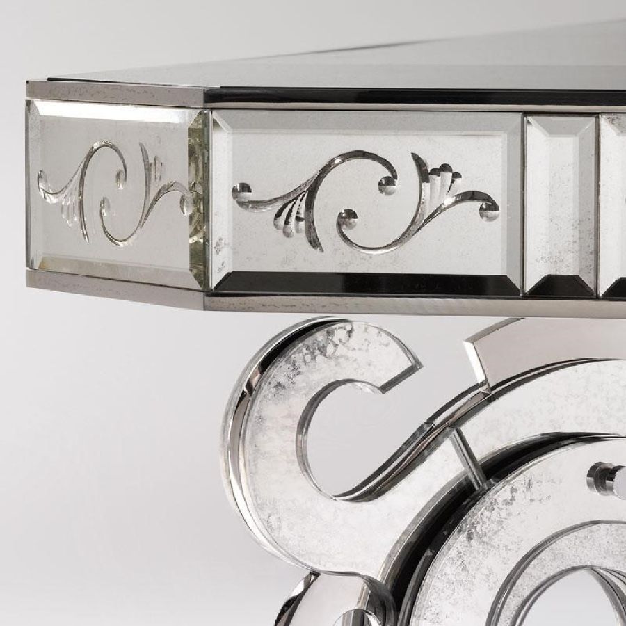 Dining tables by Arte Veneziana embody the brand’s flair for blending artistic expression with traditional Venetian craftsmanship. Each table is a statement piece, featuring hand-engraved glass, rich finishes, and bold proportions that reflect a deep reverence for historical design. Whether adorned with mirrored panels or subtle ornamentation, these tables bring a sense of grandeur to the heart of the home.