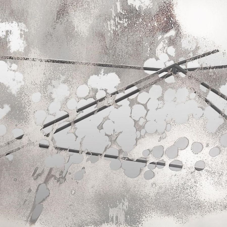 Manipulating the glass surface by corroding its mirrored finishing is a handmade process that can partially be controlled by manual skill. Each drop of salty solution that ruins the thin layer of mirrored finishing is actually a surprise.
