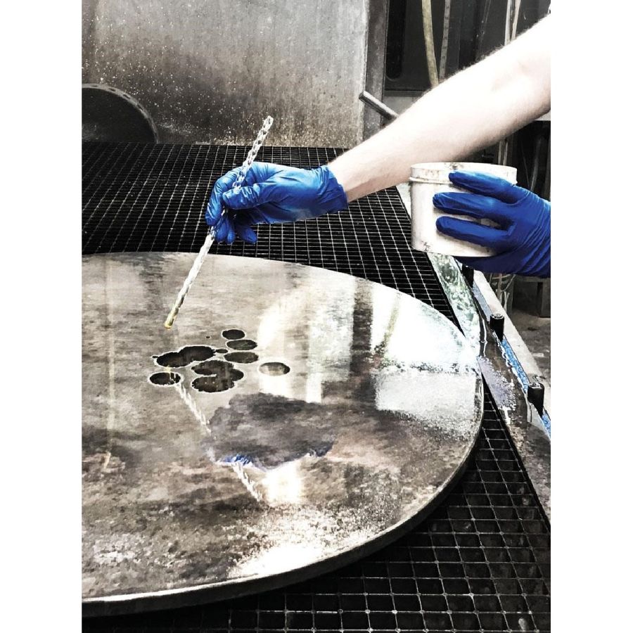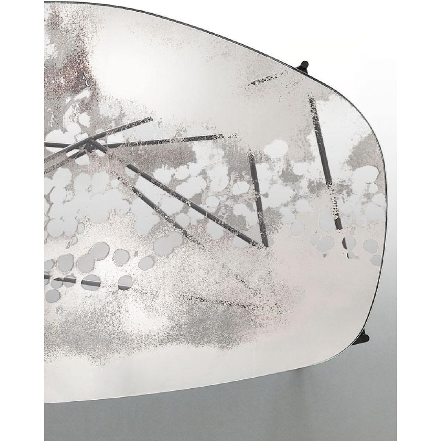 This results in a uniquely different, corrosion of the mirrored surface every time. Timing is the key factor in this handmade process.