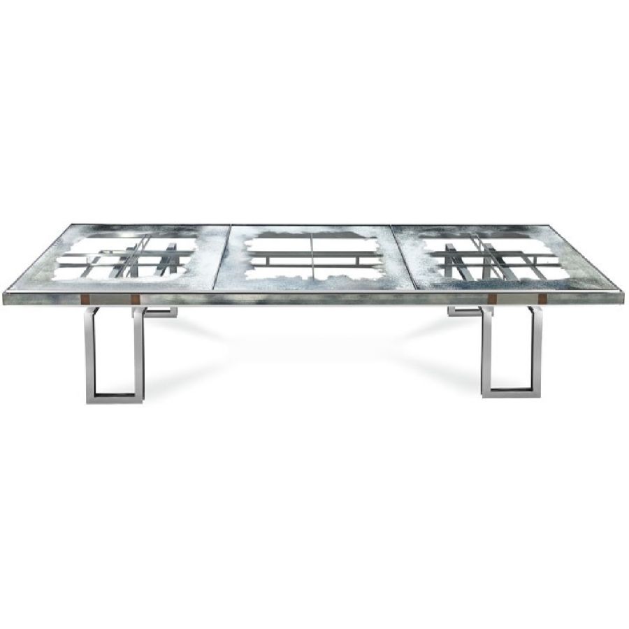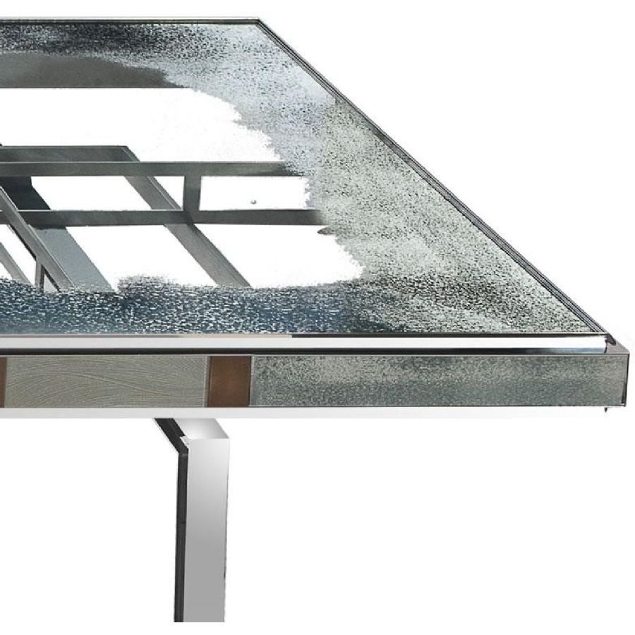 Top made of glass with medium antique mirrored finish on the edges and transparent in the centre, “Lagune” style.