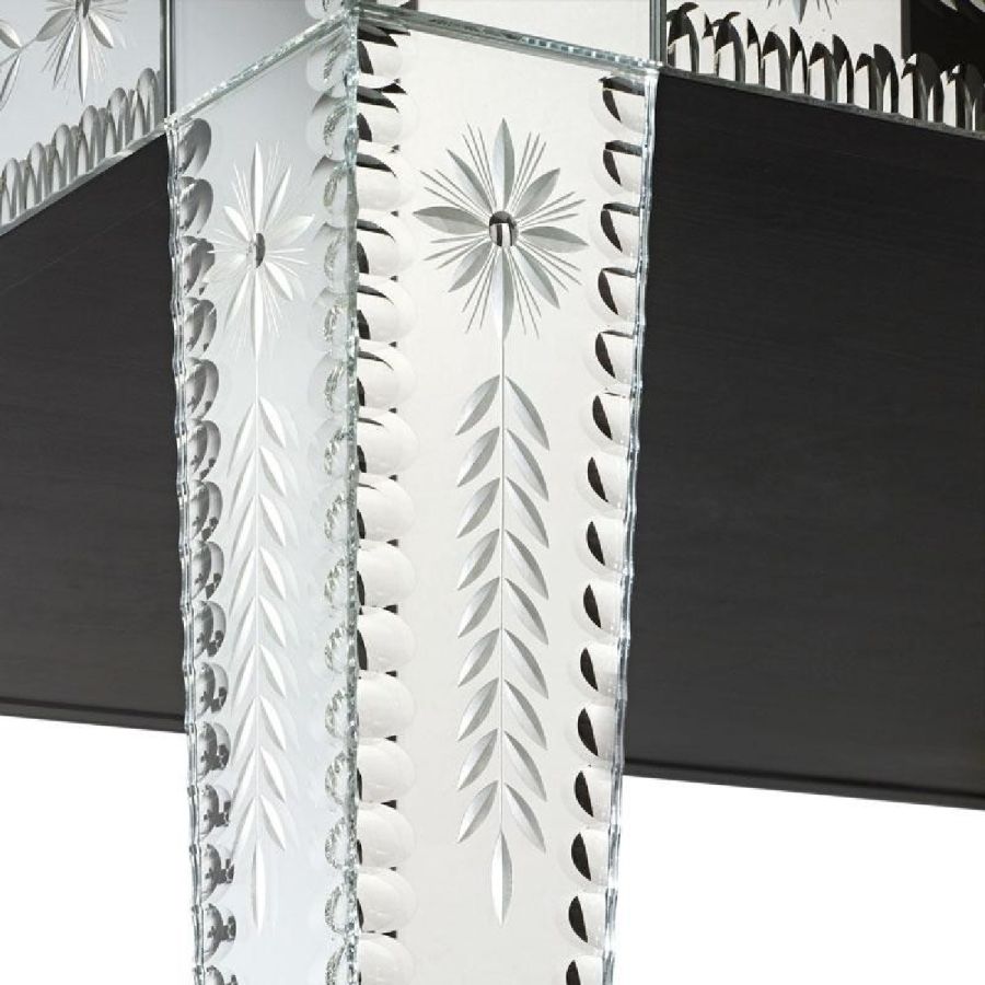 Frames made of engraved glass with clear mirrored finish and with thumbnail-shaped etchings.
