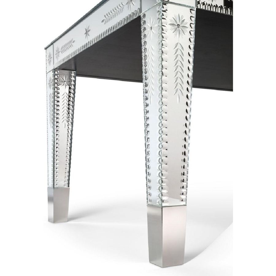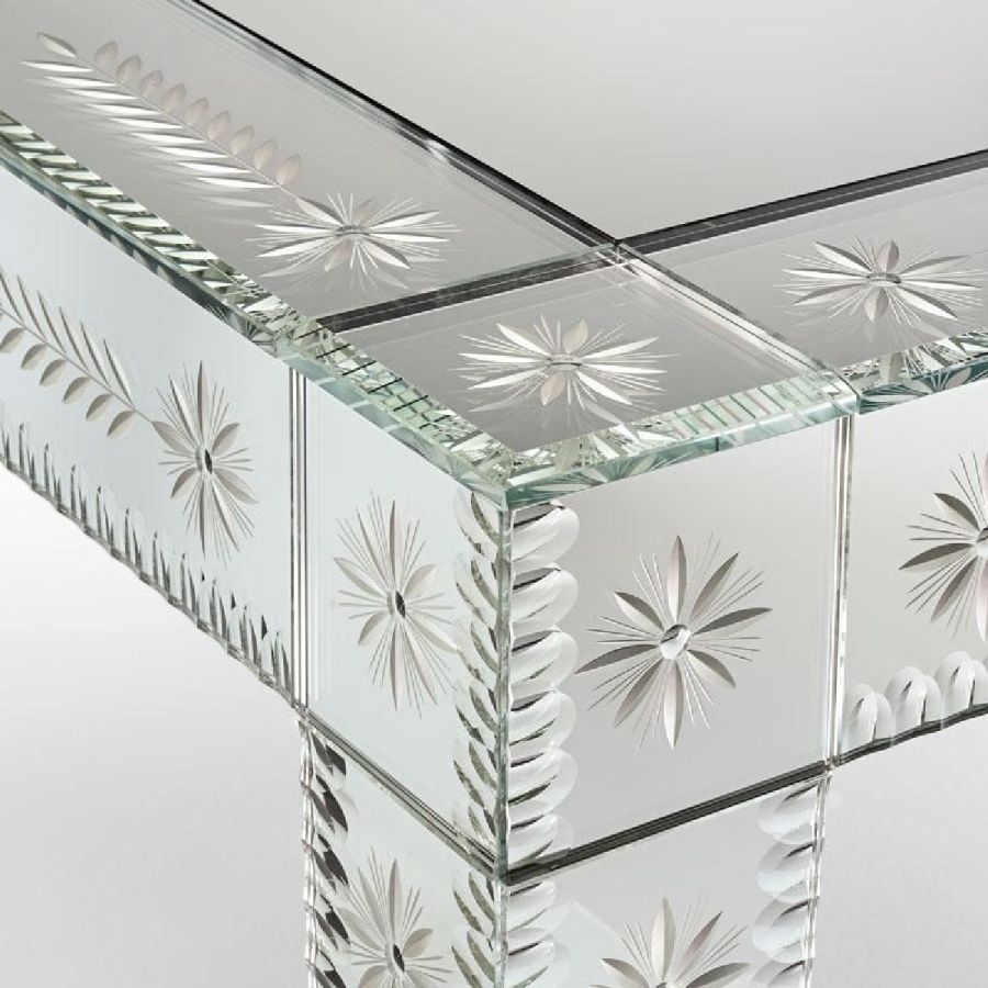 Dining tables by Arte Veneziana embody the brand’s flair for blending artistic expression with traditional Venetian craftsmanship. Each table is a statement piece, featuring hand-engraved glass, rich finishes, and bold proportions that reflect a deep reverence for historical design. Whether adorned with mirrored panels or subtle ornamentation, these tables bring a sense of grandeur to the heart of the home.