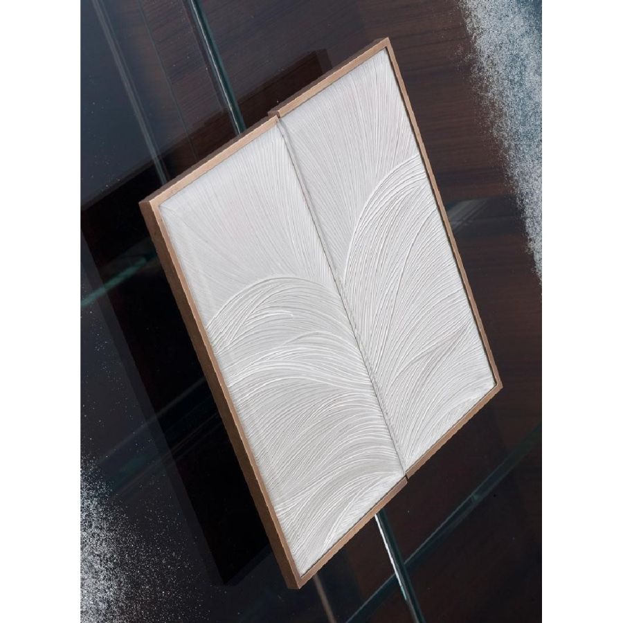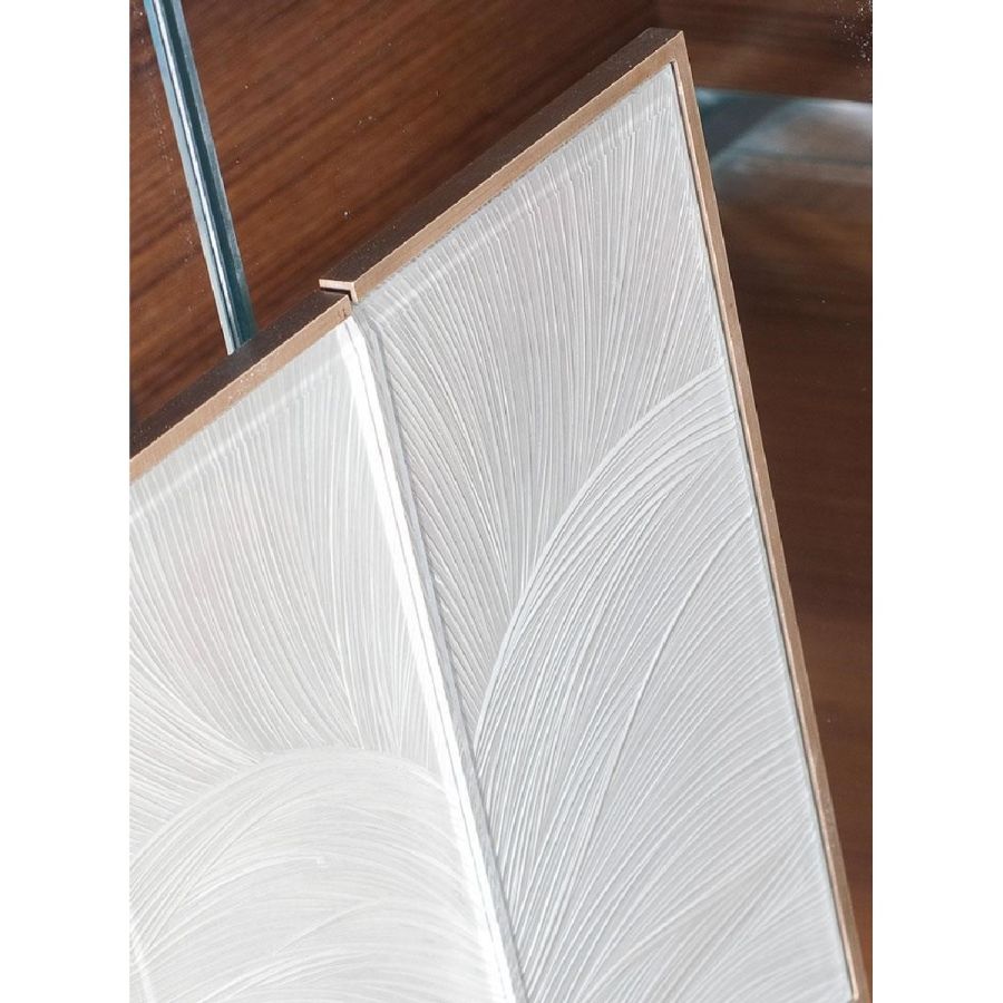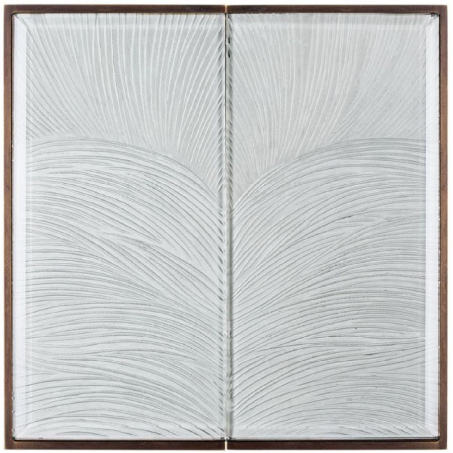 “Battuto” decor engravings on glass with clear mirrored finish.