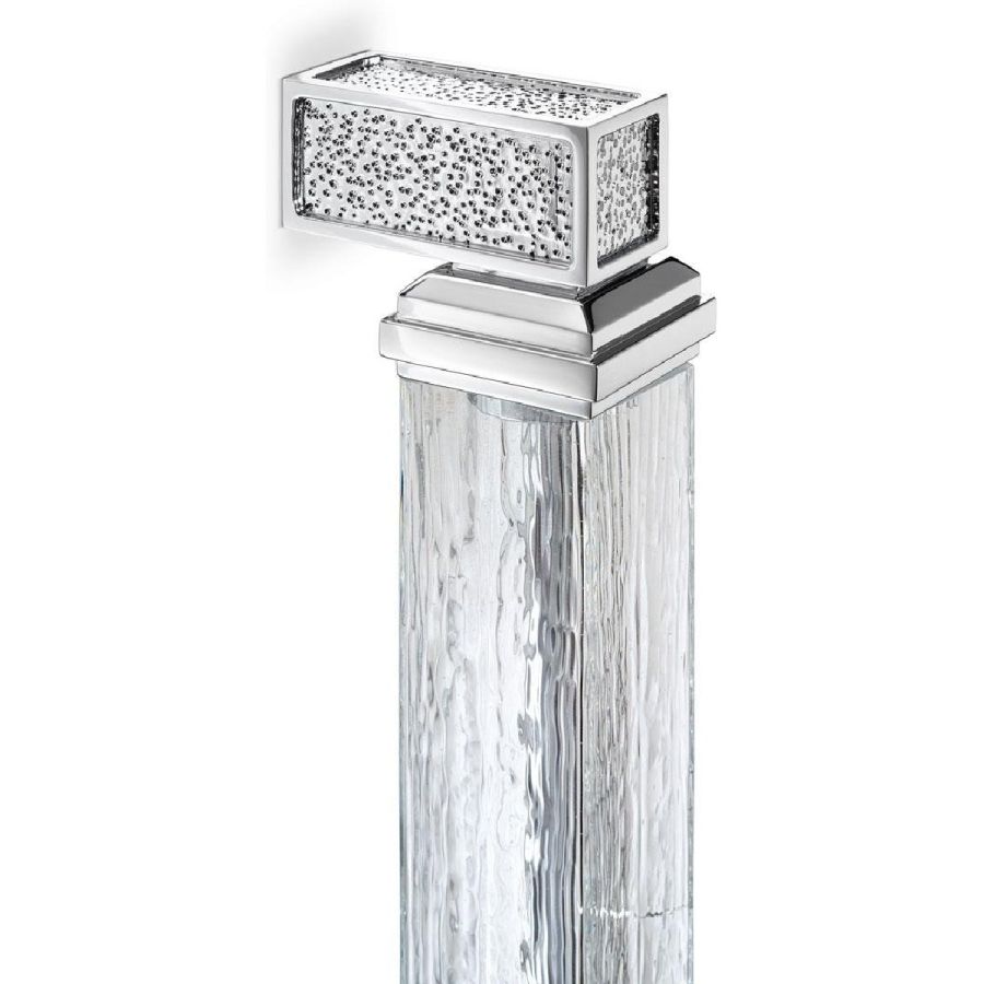Structure made of shiny chrome-plated brass. Squared-shaped handle made of striped crystal coloured Murano glass.