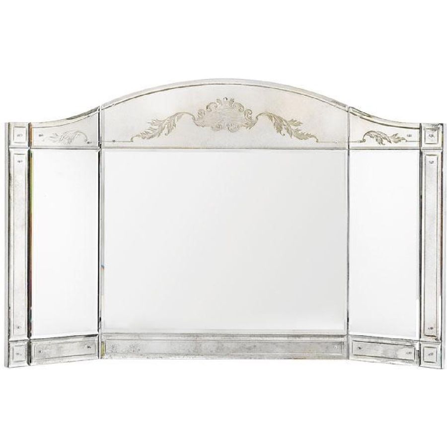 Top and back made of bevelled glass with medium antique mirrored finish.