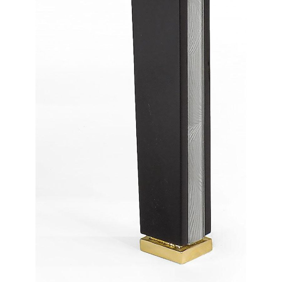 Structure made of wood with shiny black lacquered finish. Metal tube-shaped frame with brass and shiny black nickel finish.
