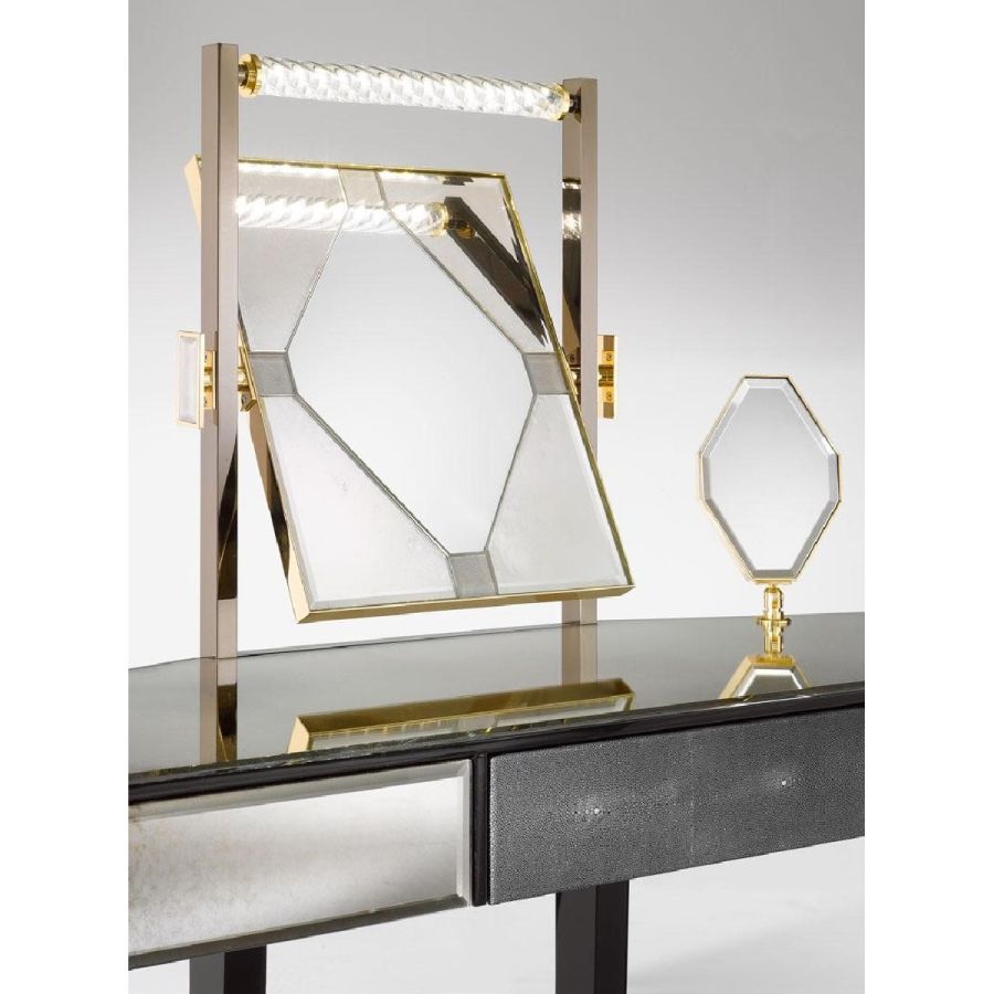 Dressing tables by Arte Veneziana exemplify the brand’s dedication to refined beauty and meticulous craftsmanship. Each piece is an artistic composition, often adorned with hand-engraved mirrored surfaces, decorative accents, and sophisticated silhouettes inspired by classical Venetian design. These tables are not only functional but also radiate charm and elegance, making them statement pieces in any boudoir or dressing room.