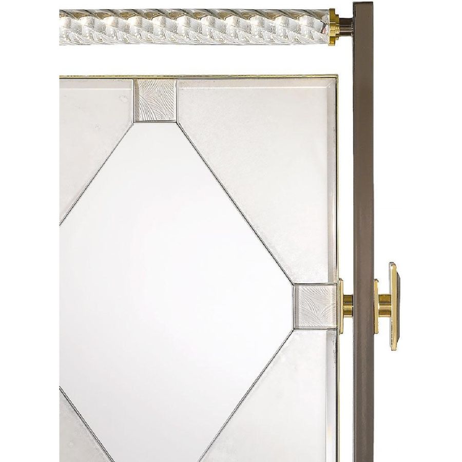 Swivel central mirror with LED lights, medium antique mirrored finish and central part with clear mirrored finish. Swivel side mirror with shinygolden metal structure.
