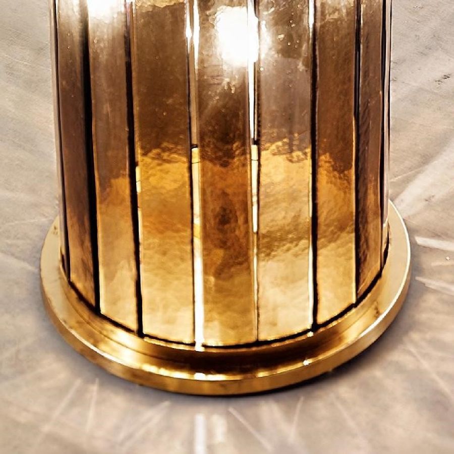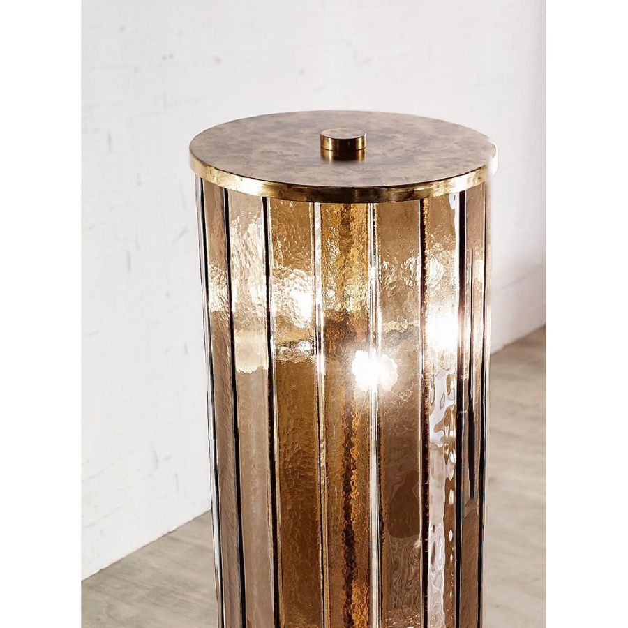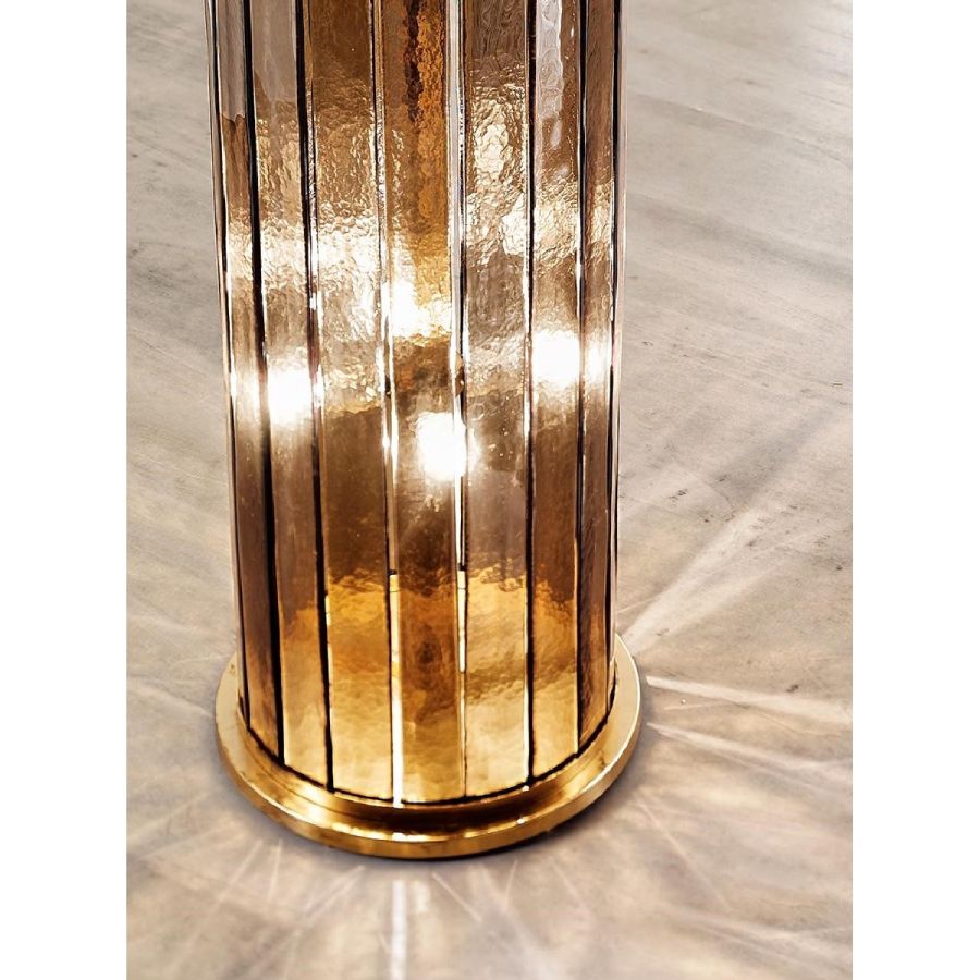 Art Déco Floor Lamp with amber glass bands and eight lights. Structure in antiqued brass.