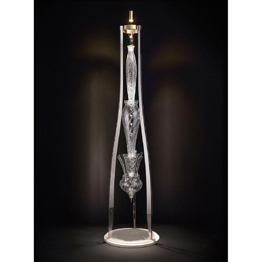Arte Veneziana's floor lamps combine sculptural finesse with ambient illumination, bringing a unique touch of Venetian artistry to modern interiors. Crafted with hand-engraved crystal, Murano glass, and refined metal structures, these lamps are both decorative and functional.