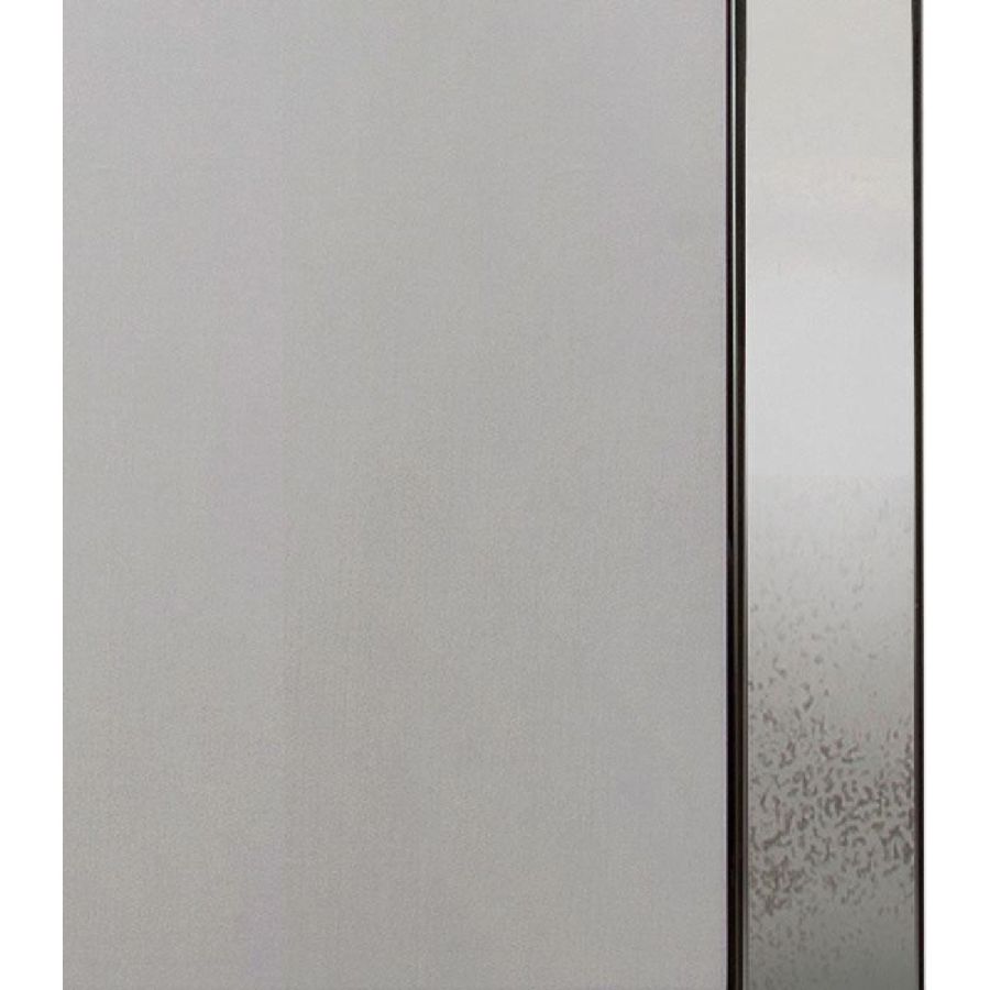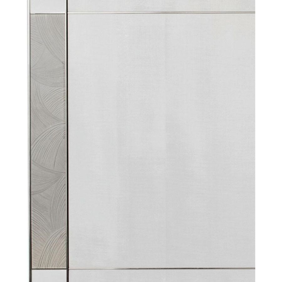 Structure made of wood with whitened shiny finish. Jambs made of bevelled glass tiles with light to medium mirrored finish.