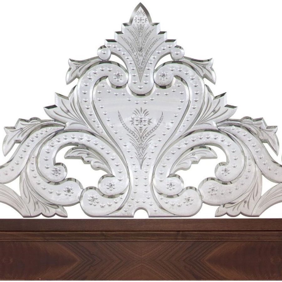 Soranzo floral motif and shiny sphere engravings on the glass sheets and crest. Two twisted crystal coloured Murano glass handles.
