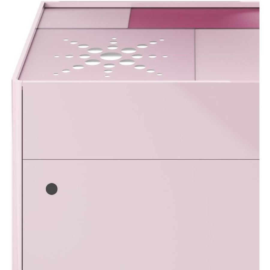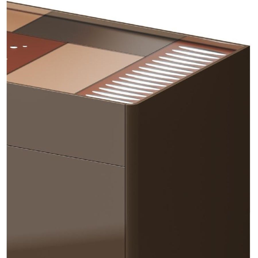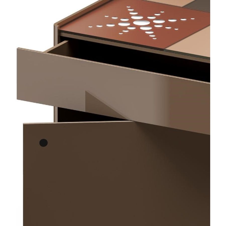 Single drawer and drawer plus door with push pull opening. Earth and/or antique rose lacquered plywood structure.