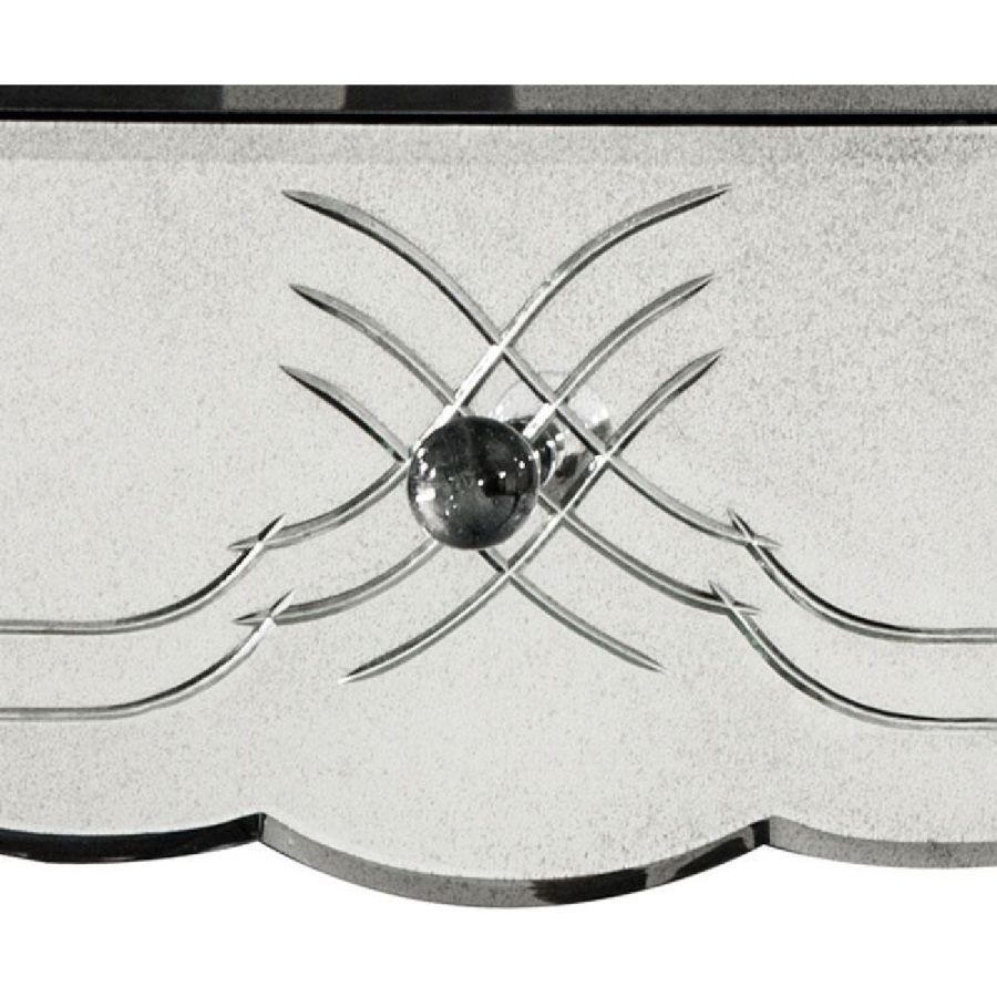 Drawers made of bevelled and engraved glass with medium antique mirrored finish.