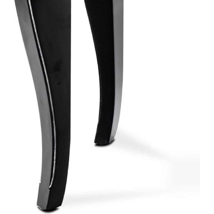 Structure made of wood with black matte lacquered finish. Four shaped legs with silver leafed perimetral edges.